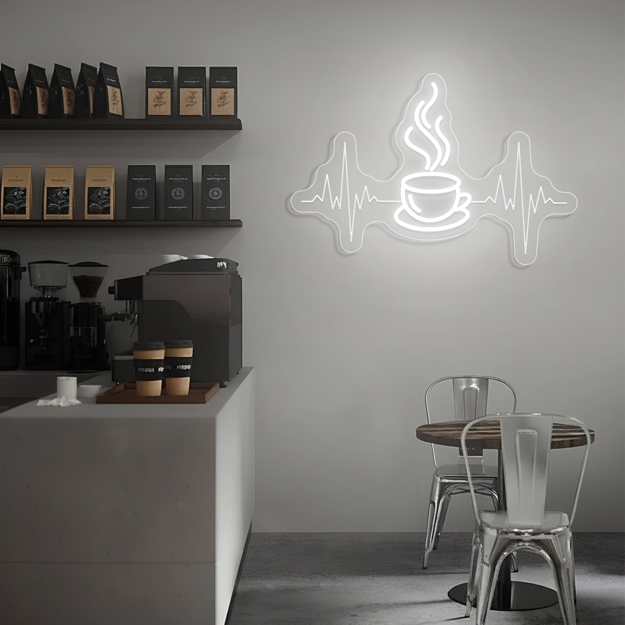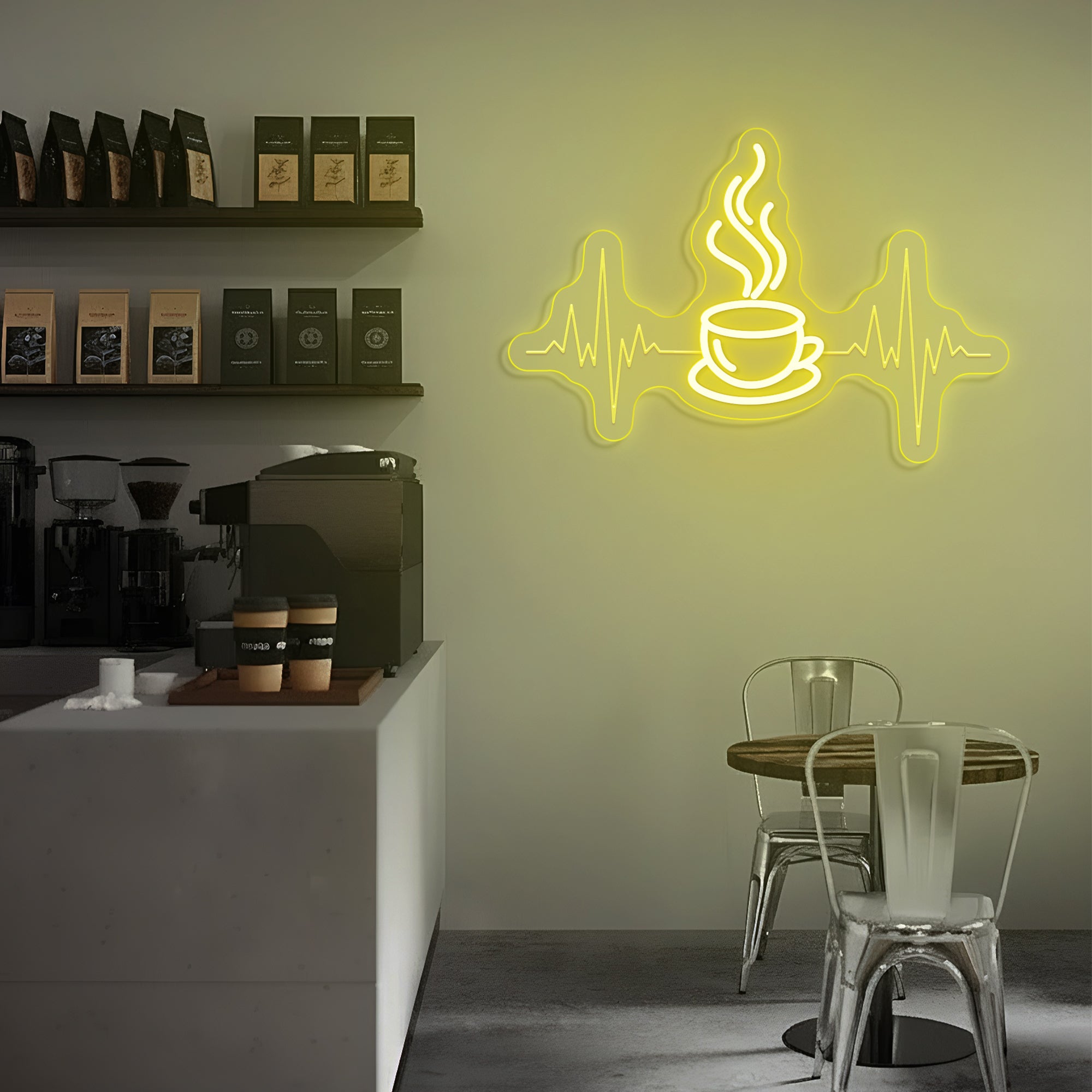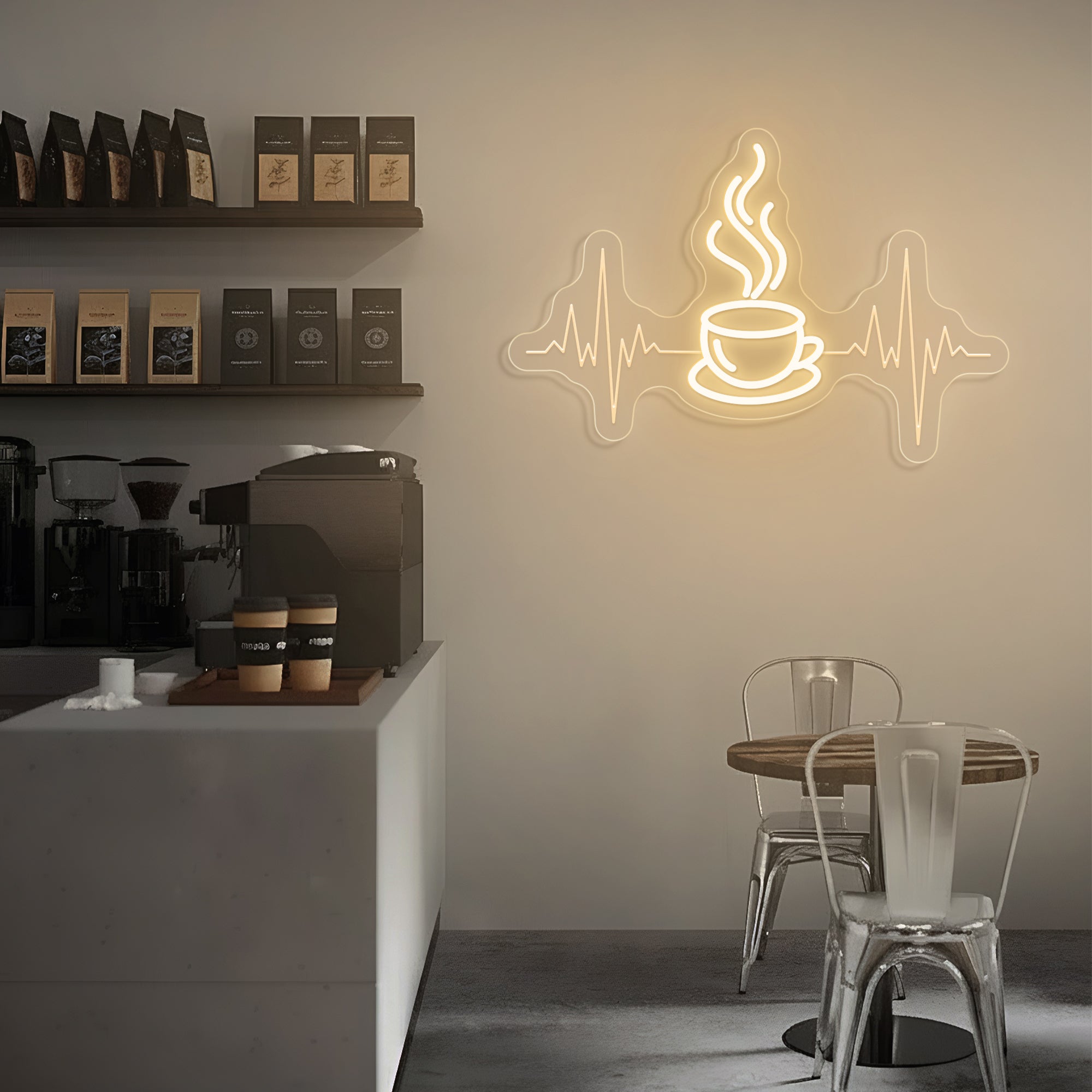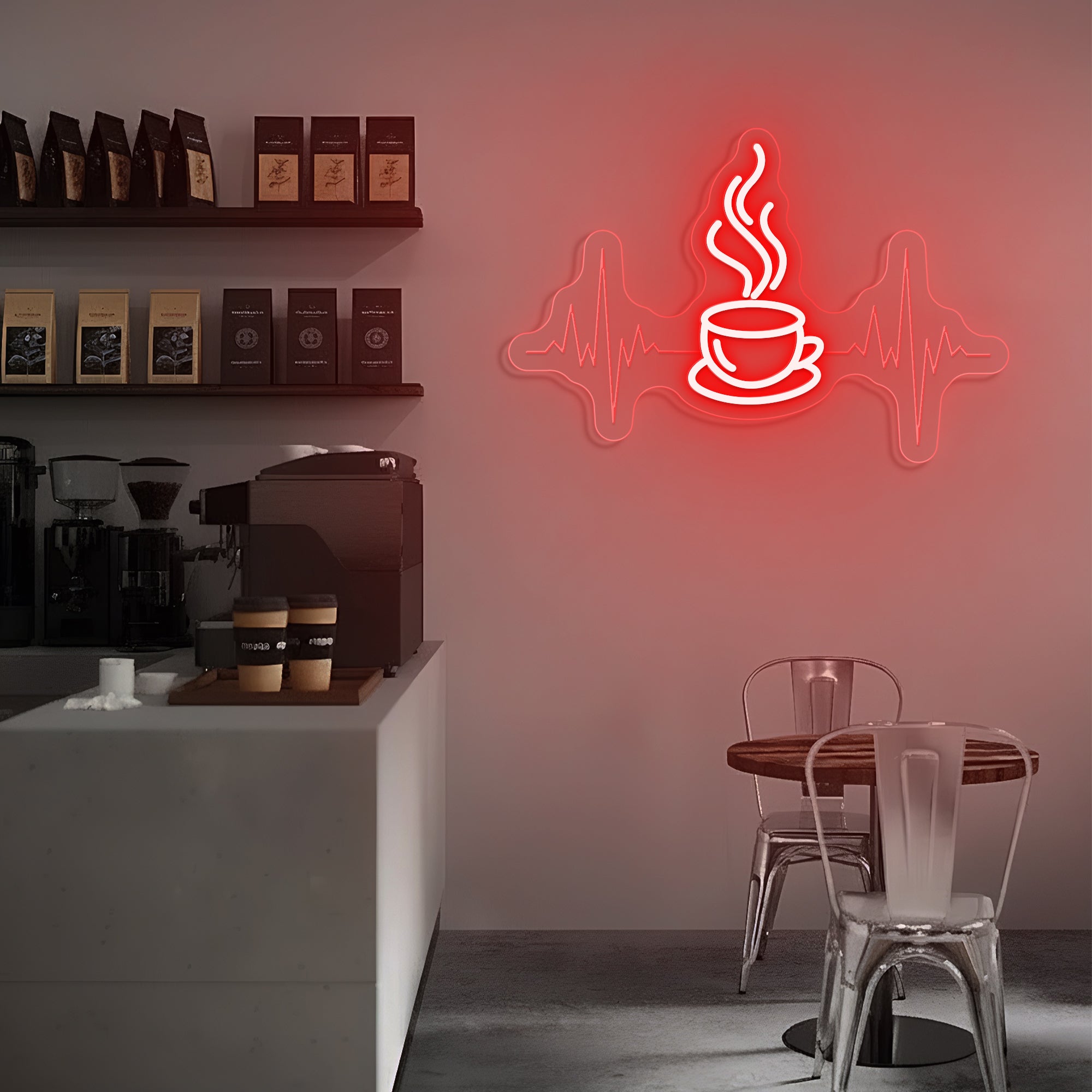 Built with premium, resilient materials to endure as a steadfast emblem of your love for coffee and the life it brings. The durable LED system ensures years of reliable, vibrant illumination, allowing this symbolic heartbeat to remain a constant and energizing presence in your coffee sanctuary.