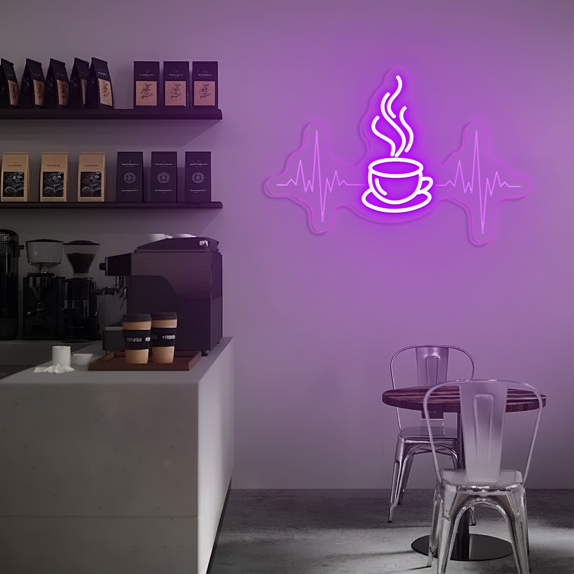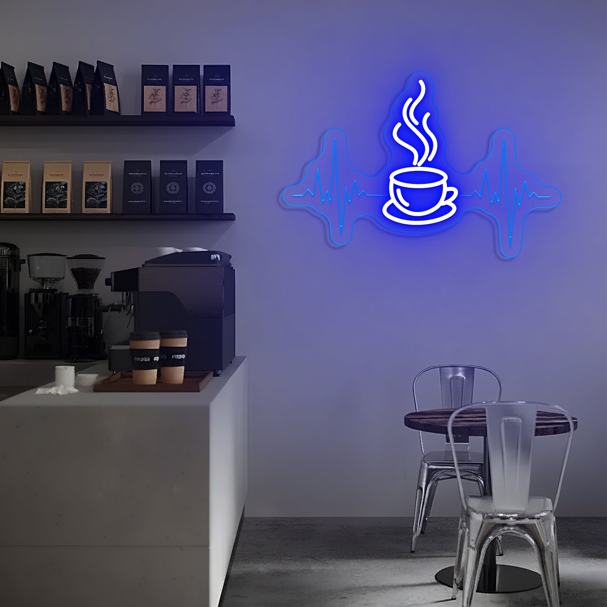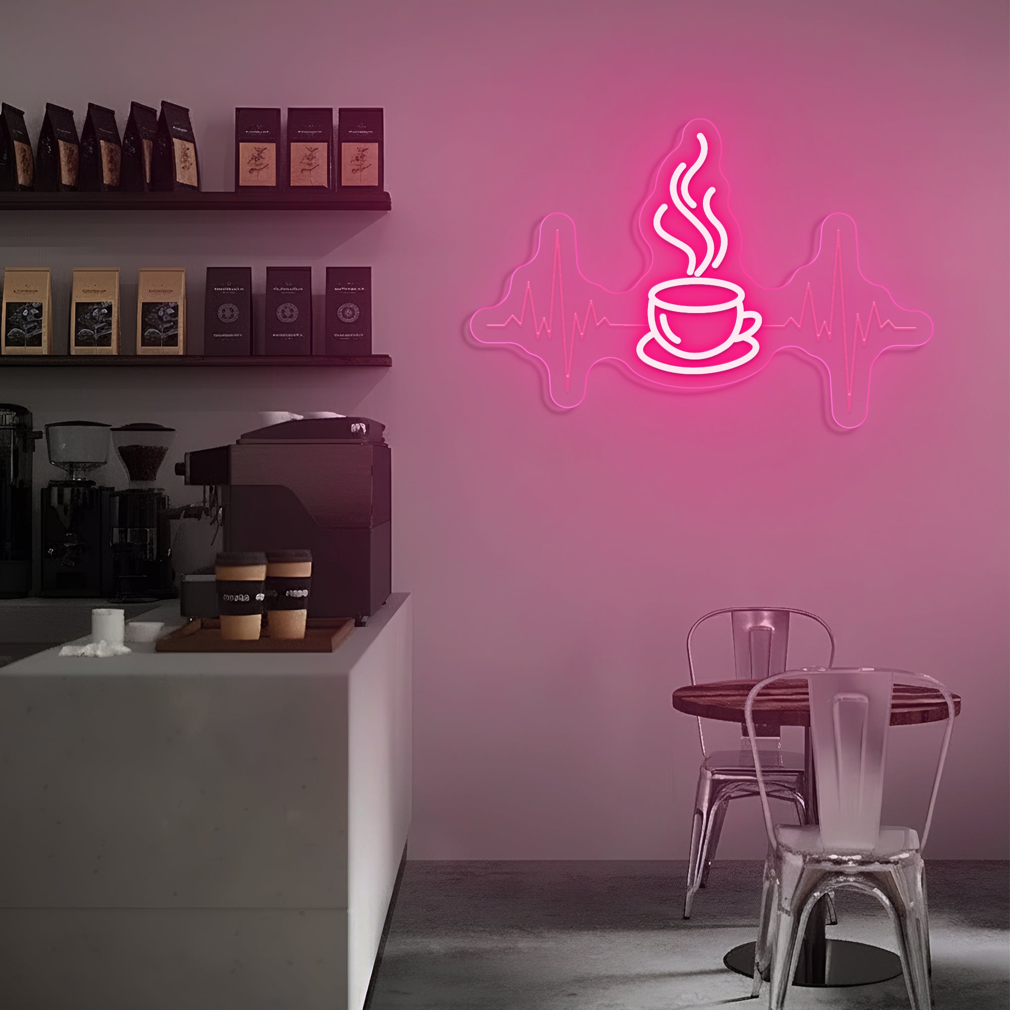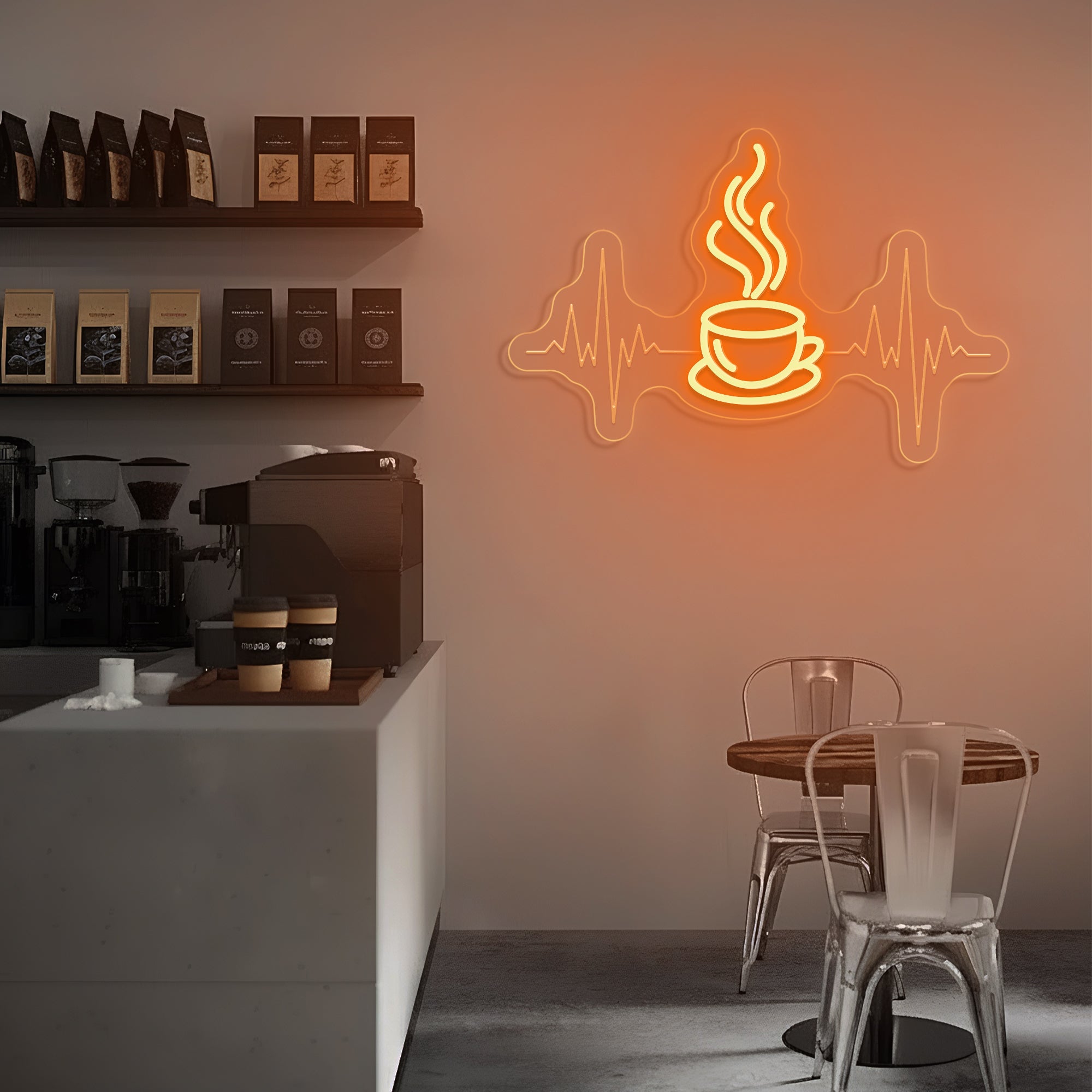 Built with premium, resilient materials to endure as a steadfast emblem of your love for coffee and the life it brings. The durable LED system ensures years of reliable, vibrant illumination, allowing this symbolic heartbeat to remain a constant and energizing presence in your coffee sanctuary.