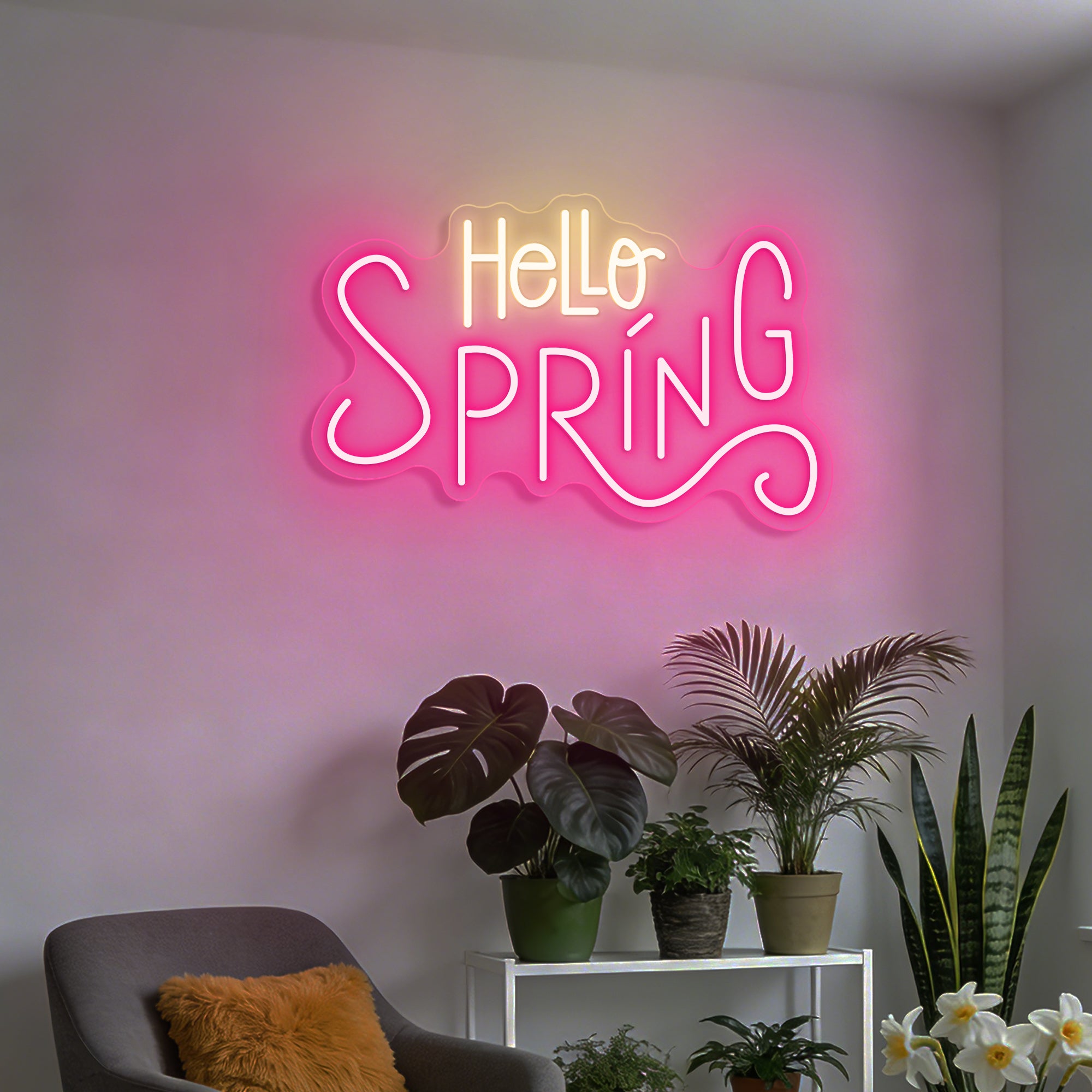 Clean Typography Design: This bright and cheerful sign features the seasonal greeting “HELLO SPRING” in a clear, modern script, crafted entirely from smooth LED neon tubing. Its minimalist design delivers a direct and optimistic message of renewal.