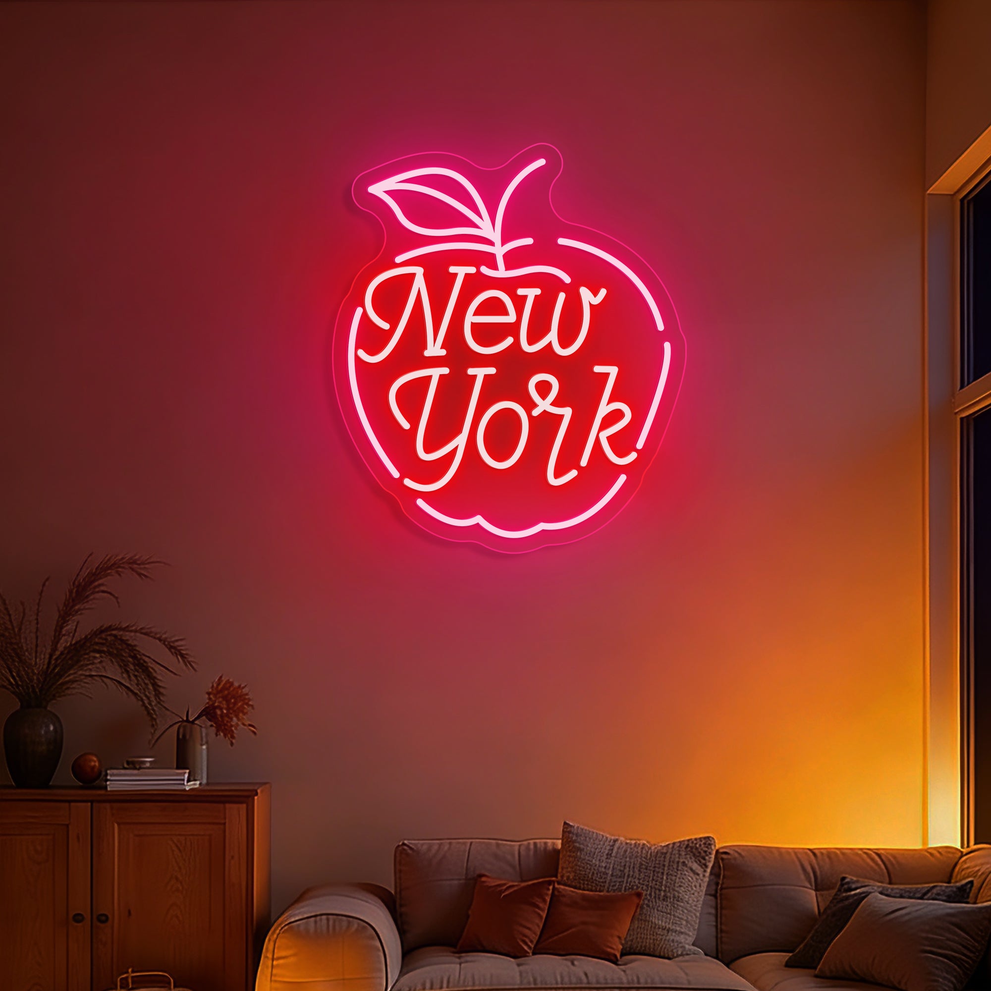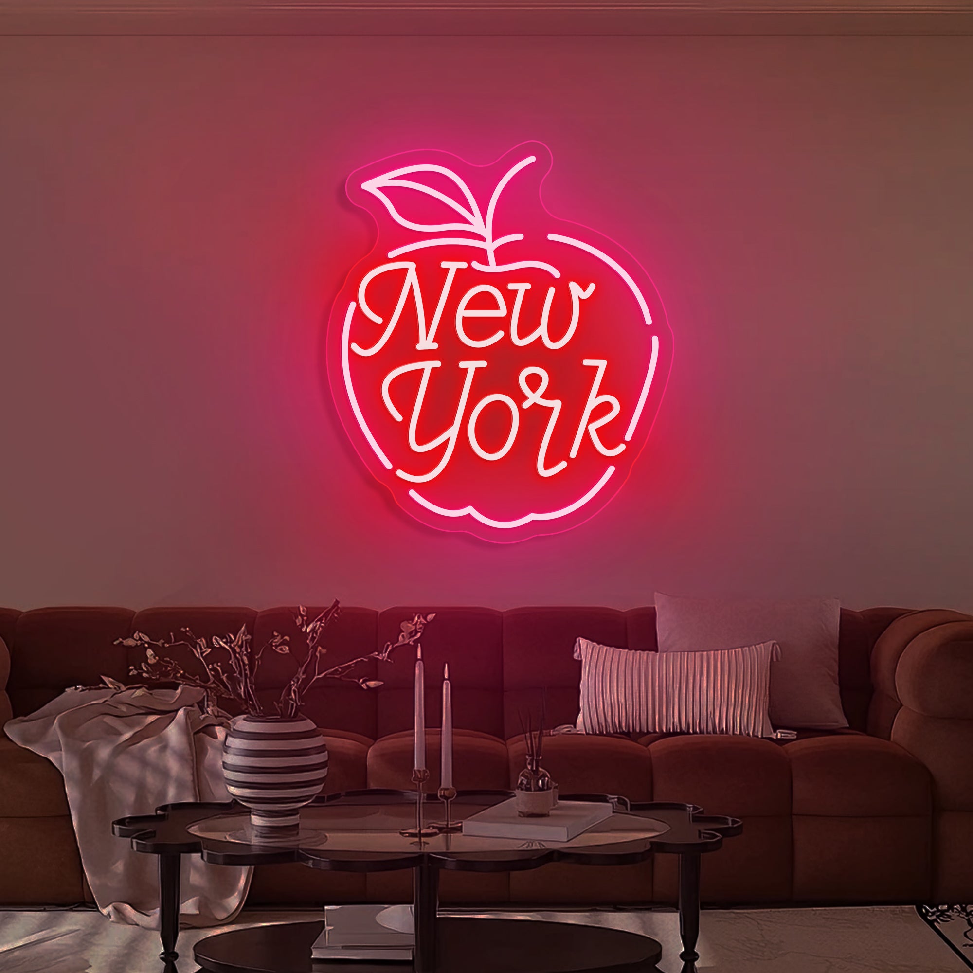 Urban & Inviting Glow: Emits a vibrant, energetic light that captures the city's 24/7 spirit. The warm glow through the apple outline and the bold text creates an atmosphere that is both nostalgic for the city's history and excitingly contemporary.