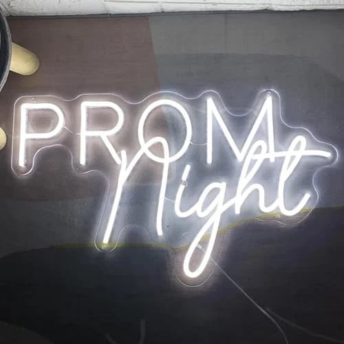 Elegant & Nostalgic Typography Design: This luminous sign captures the magic and romance of one of life's most memorable milestones. It features the iconic phrase "Prom Night" in a beautifully stylized font—perhaps an elegant script that evokes the glamour of a formal dance, or a classic serif that carries the weight of tradition and timelessness. The design is intentionally simple, sophisticated, and deeply nostalgic, allowing those two words to stand alone as a radiant tribute to an evening of dreams, dresses, and unforgettable moments. Expertly crafted in smooth, continuous white LED neon, it transforms a single night into a permanent, glowing celebration of youth, love, and the magic of growing up.