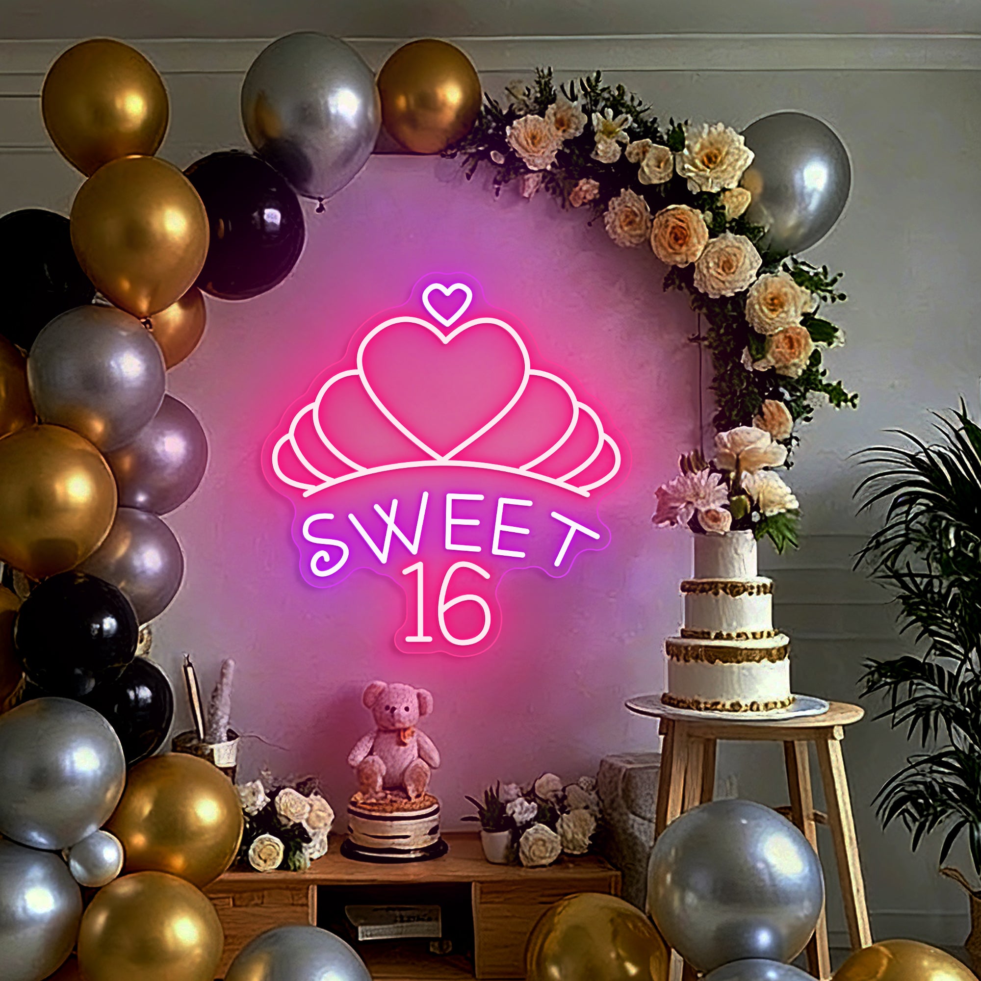 Sweet 16 Heart Crown Birthday Party Neon Sign