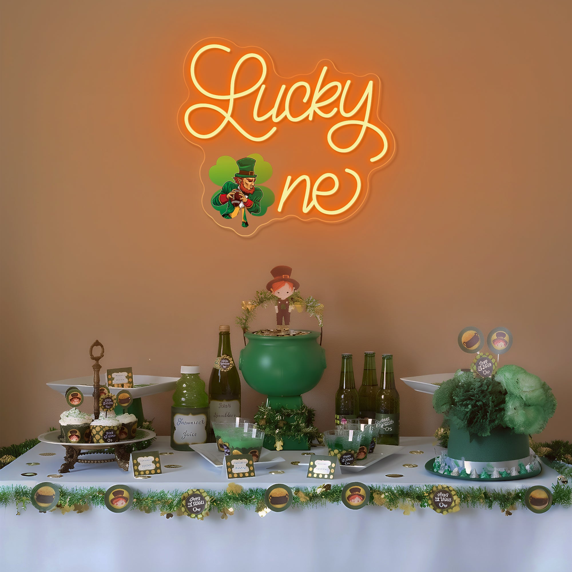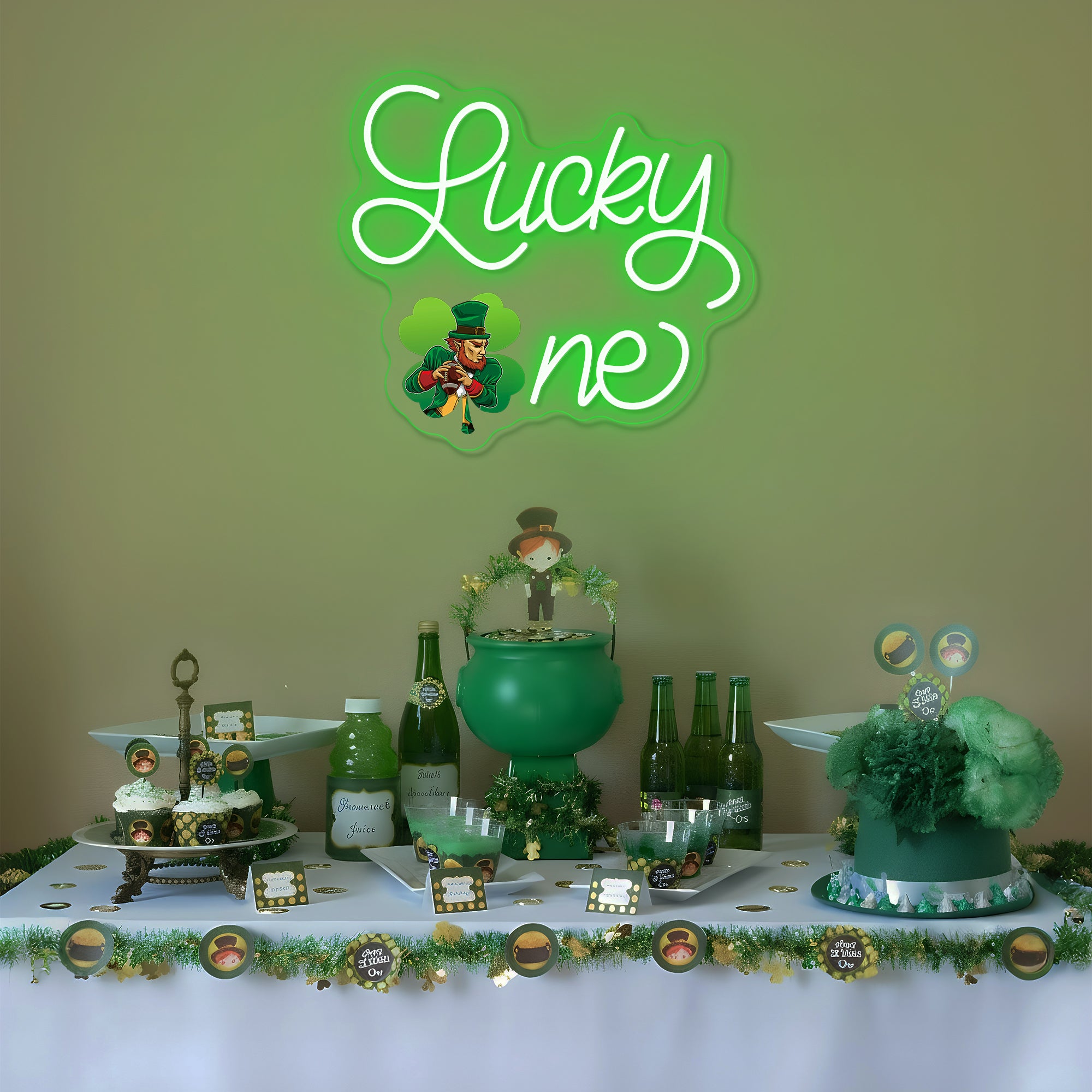 Clever & Festive Typography Design: This charming sign declares your fortunate status with Irish wit and warmth. It features the affirming phrase “Lucky One” in a bold, friendly, and celebratory font, brought to life through high-fidelity UV printing. In a delightful and symbolic twist, the letter “O” in “One” is playfully replaced by a perfectly formed, vibrant four-leaf clover—the most cherished emblem of good fortune. The intentional fusion of word and symbol transforms a simple statement of identity into a luminous talisman of luck and belonging. Expertly crafted on premium acrylic with smooth, radiant LED neon outlining the entire design, it turns a heartfelt sentiment into a glowing beacon of Irish charm.
