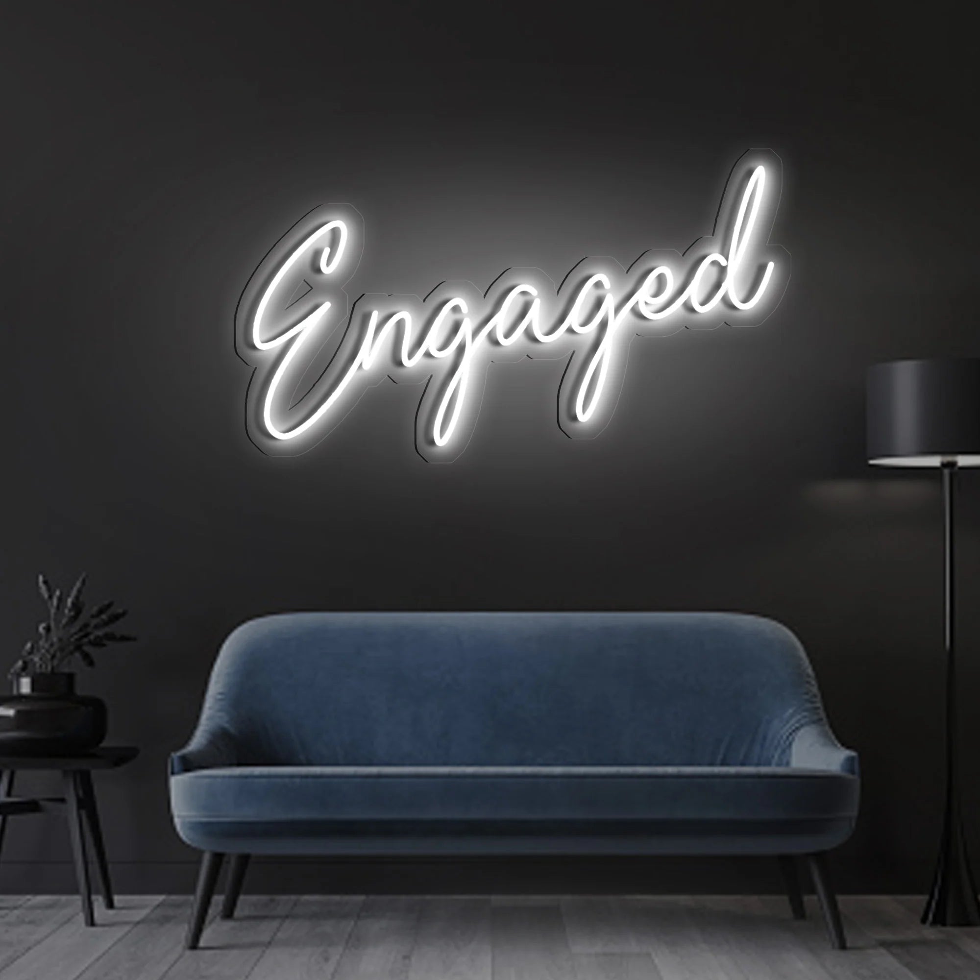 Elegant & Declarative Typography Design: This sign announces your exciting new chapter with clarity and joy. It features the single, powerful word “Engaged” in a beautifully crafted script or a clean, modern sans-serif font. The design is intentionally focused and celebratory, transforming a momentous life announcement into a luminous, elegant statement. Expertly crafted in smooth, continuous LED neon, it turns your joyful news into a radiant and permanent declaration for all to see.