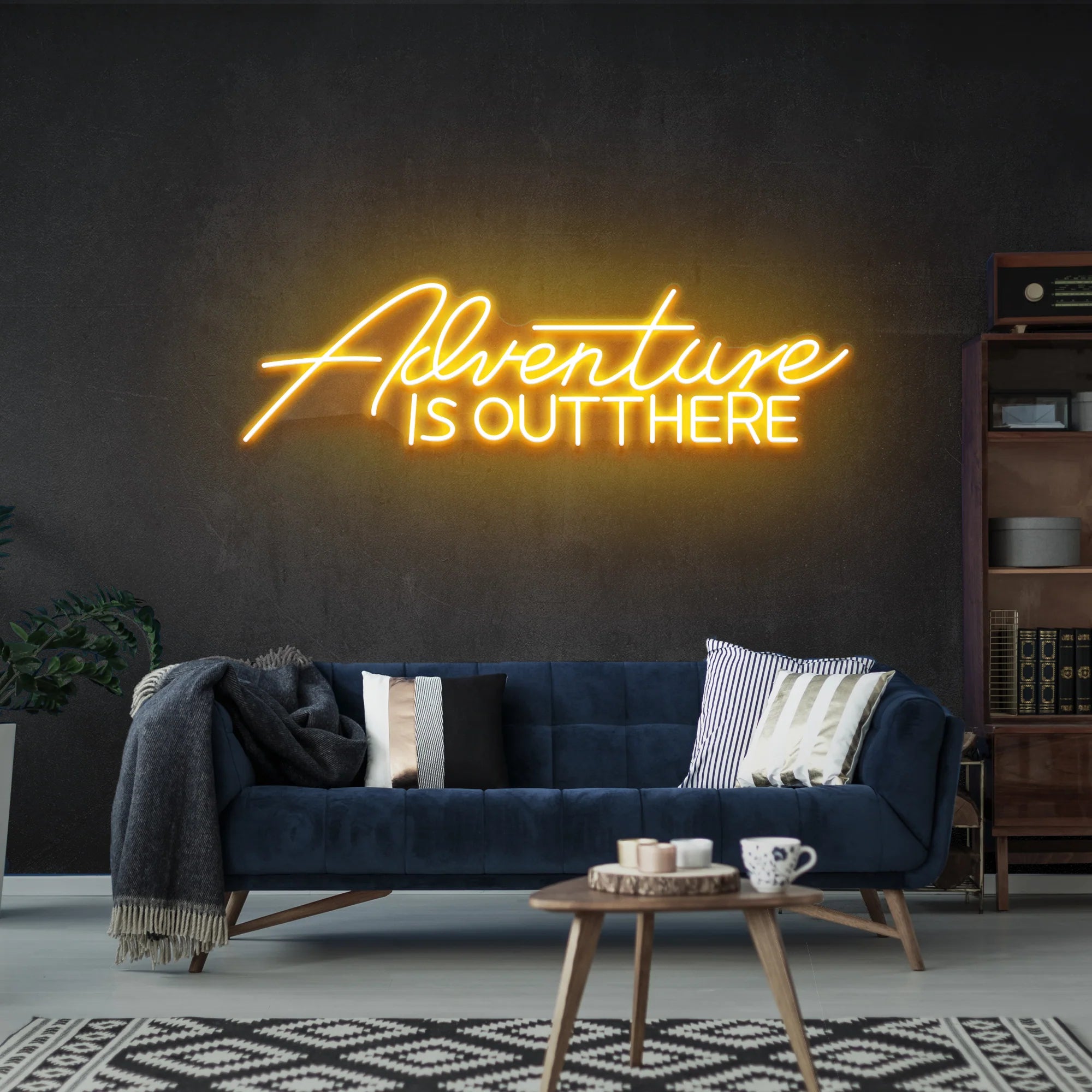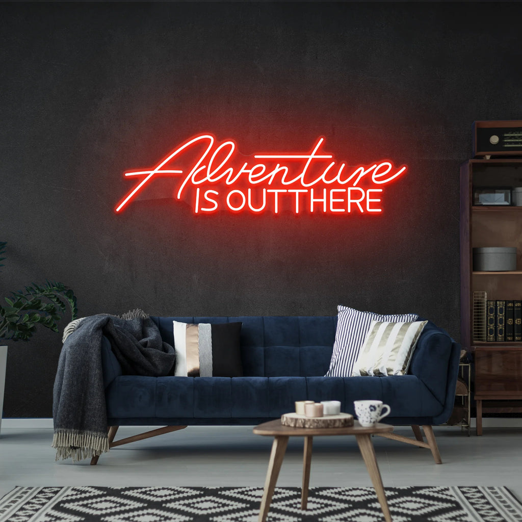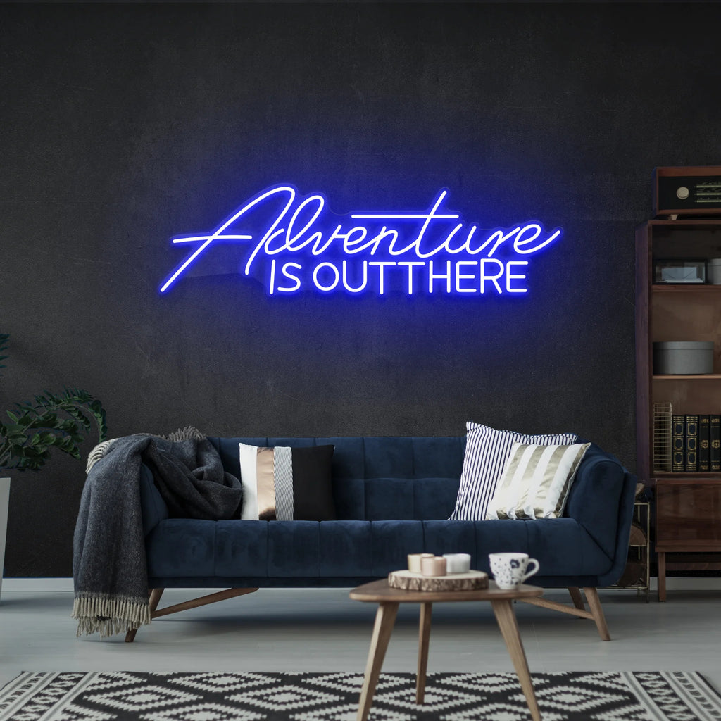 Embrace the call of exploration with our "Adventure Is Out There" neon sign. This beautifully crafted piece serves as a constant reminder to seek new horizons and embrace life's journeys. Perfect for living rooms, home offices, study spaces, or travel agencies, it brings a sense of wonder and possibility to any environment. The elegant script font and soft glow create an inspiring focal point that encourages everyone to pursue their next great adventure.