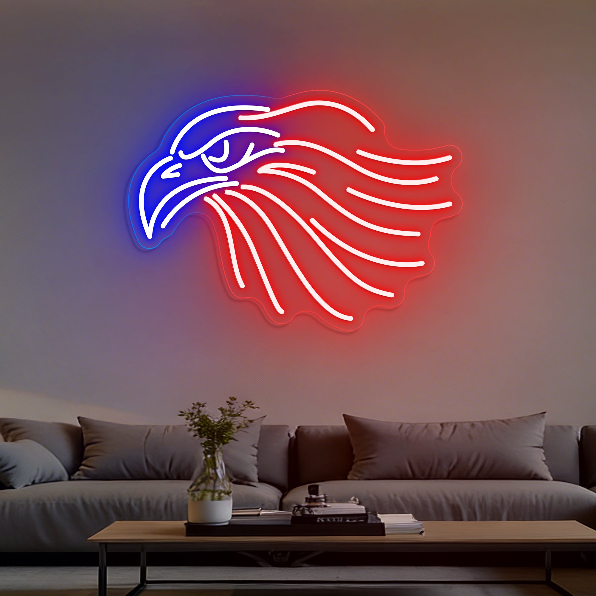 Patriotic & Commanding Glow: Emits a proud, clear light befitting the symbol it represents. The eagle typically shines in a bright white or metallic silver, set against a deep blue or rich black backplate for dramatic contrast, often accented with red or gold highlights. This focused and dignified illumination creates an atmosphere of authority and pride, casting a light that feels both historic and boldly modern—a true beacon of American spirit.