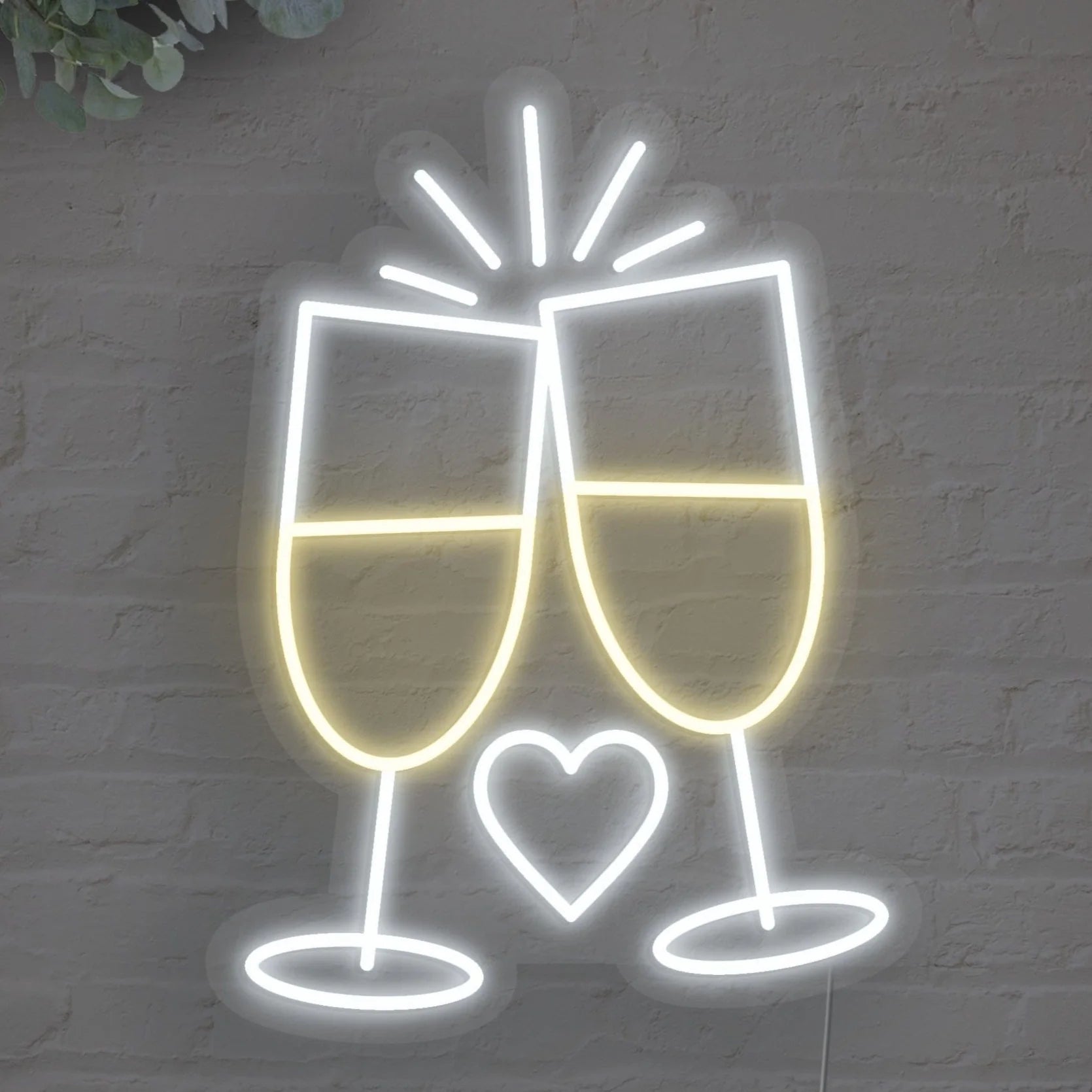 Premium Handcrafted Quality: Meticulously crafted from high-quality, flexible LED neon. Every contour of the glasses, the clinking detail, and the delicate heart are carefully formed to ensure bright, even illumination and lasting durability. Energy-efficient, cool to the touch, and built to be a cherished keepsake long after the last toast.