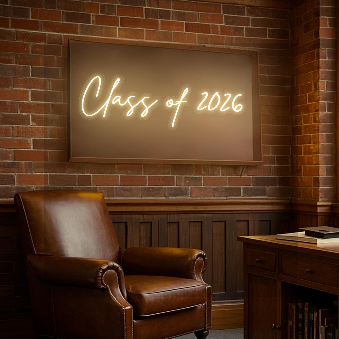 Bold & Celebratory Design: This sign is a radiant tribute to a major milestone, proudly featuring “CLASS OF 2026” in a bold, modern font. Often paired with iconic graduation symbols like a mortarboard (graduation cap) silhouette or starburst accents, it’s crafted in crisp, high-visibility LED neon. The design captures the excitement and pride of the occasion, transforming a simple year into a luminous centerpiece that declares a major achievement to the world.