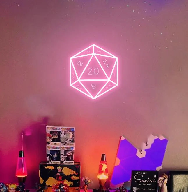 D20 Dice Gaming Room Decor Neon Sign