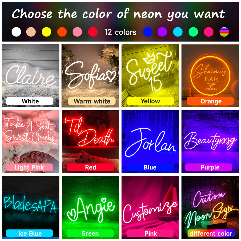Available for you are neon signs in multiple colors, whether you are looking for a bright green or a sky blue, the vivid yellow or the eye catching red… stylish purple or serene white, lively orange, pretty pink or classy blue, we have got you covered!