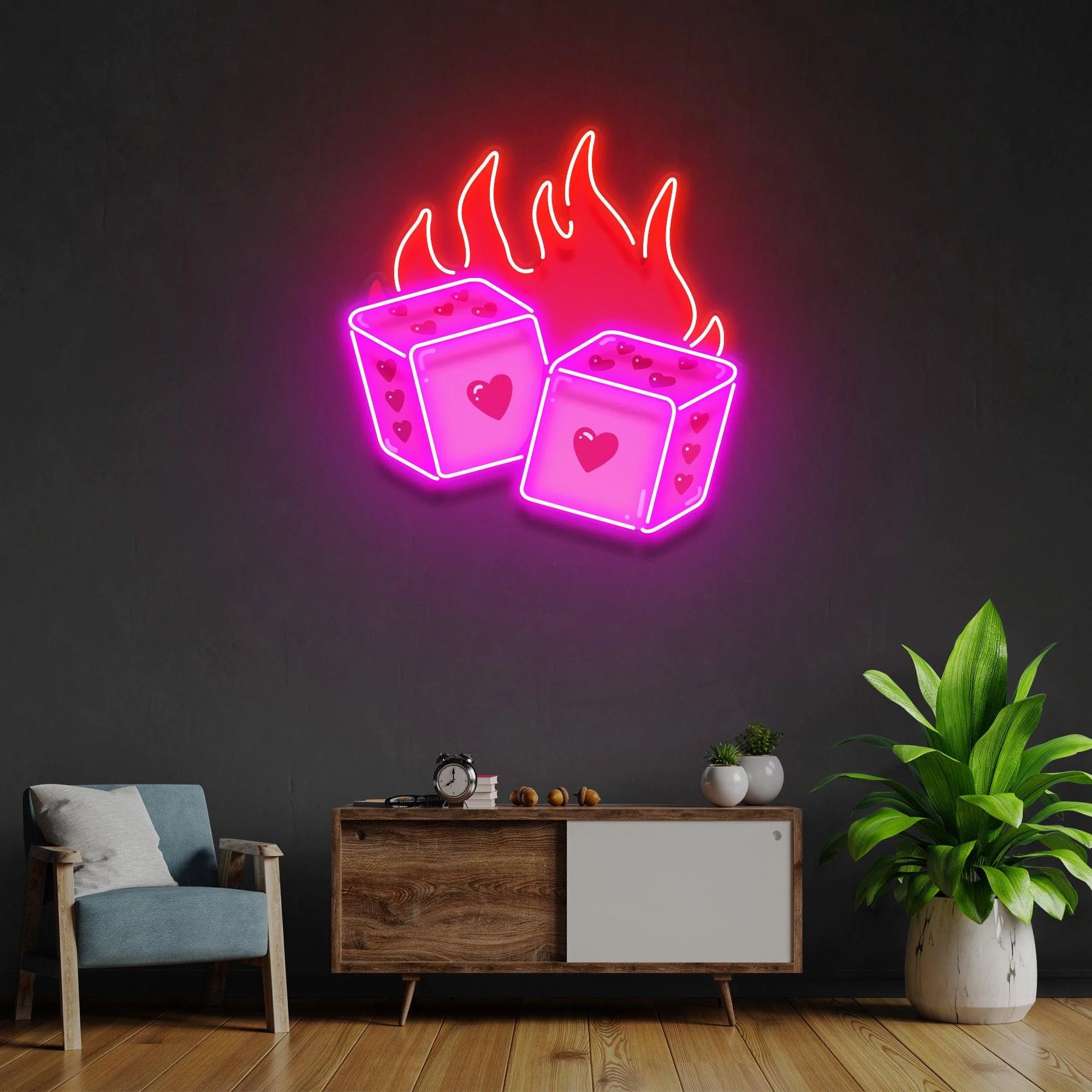HDJSign - DND Dice Love Acrylic Artwork Neon Sign