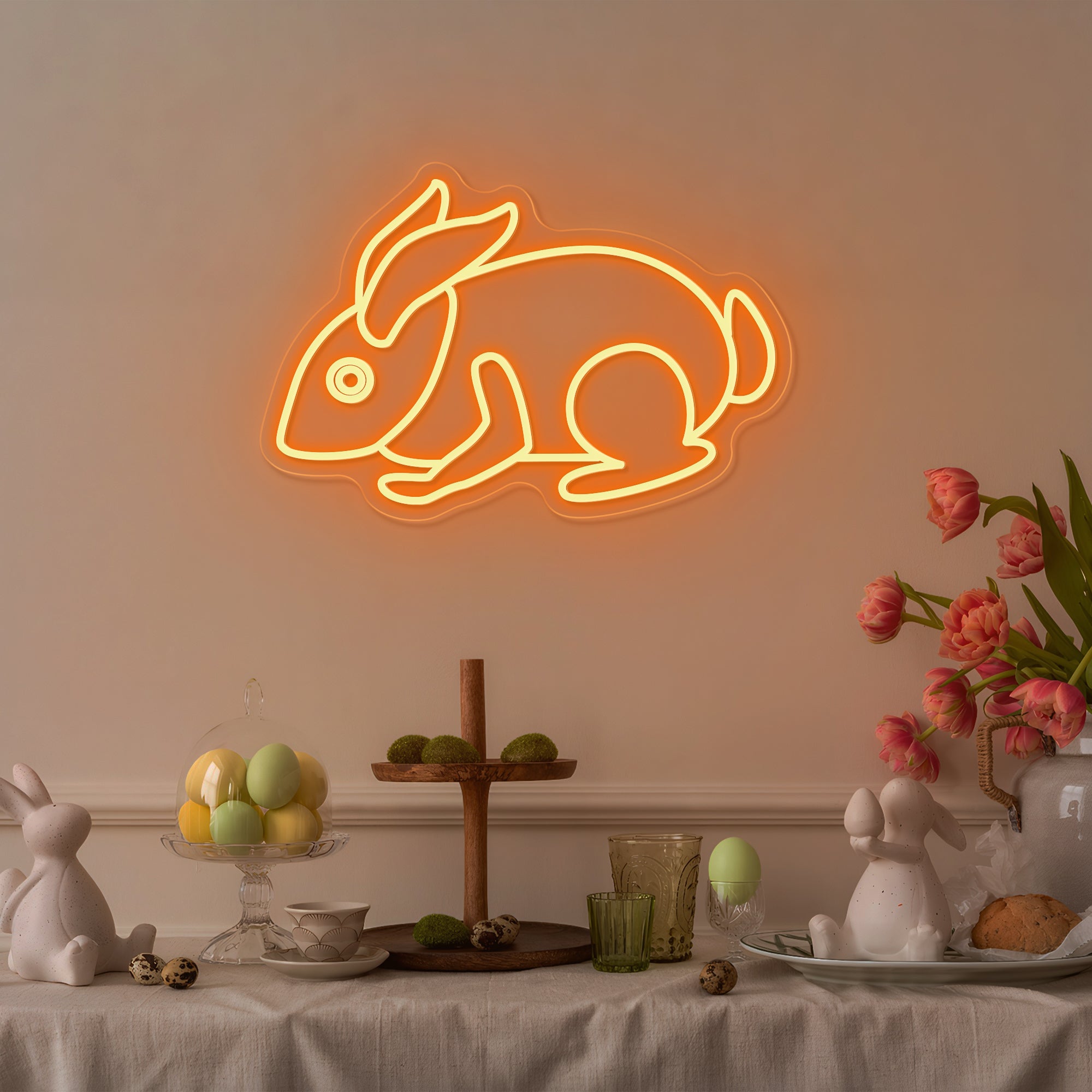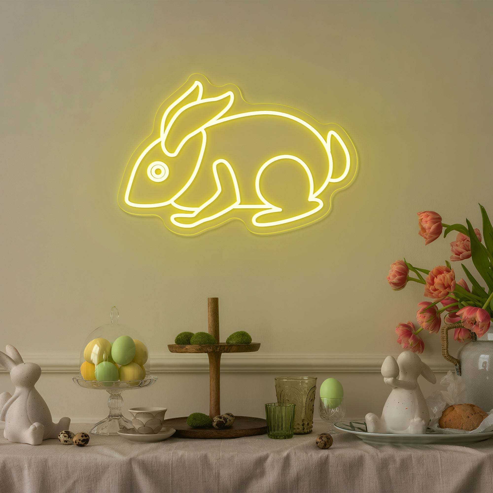 Creates a Joyful & Family-Friendly Holiday Atmosphere: More than decor, this piece is a visual expression of Easter's happiest spirit. It instantly transforms a living room, entryway, child's bedroom, kitchen, or holiday gathering space into a celebration of spring and renewal. It fosters an environment of joy, wonder, and family warmth, serving as a stunning, photogenic focal point for Easter egg hunts, family brunches, and holiday photos. It doesn't just decorate; it brings the magic of the Easter Bunny to life, glowing warmly in your home.