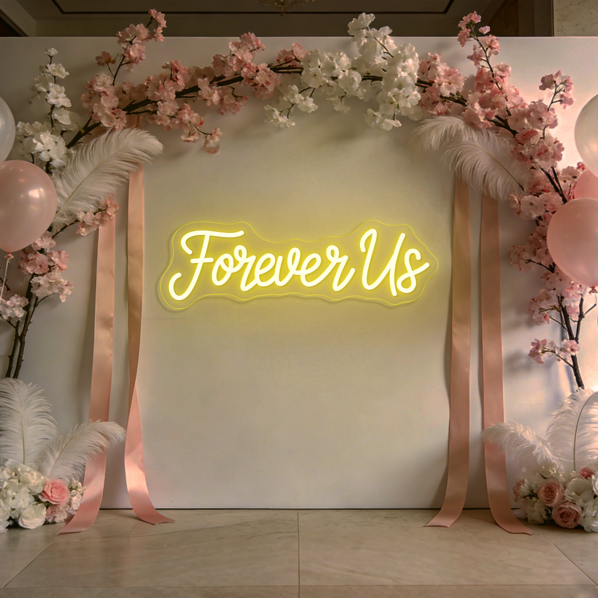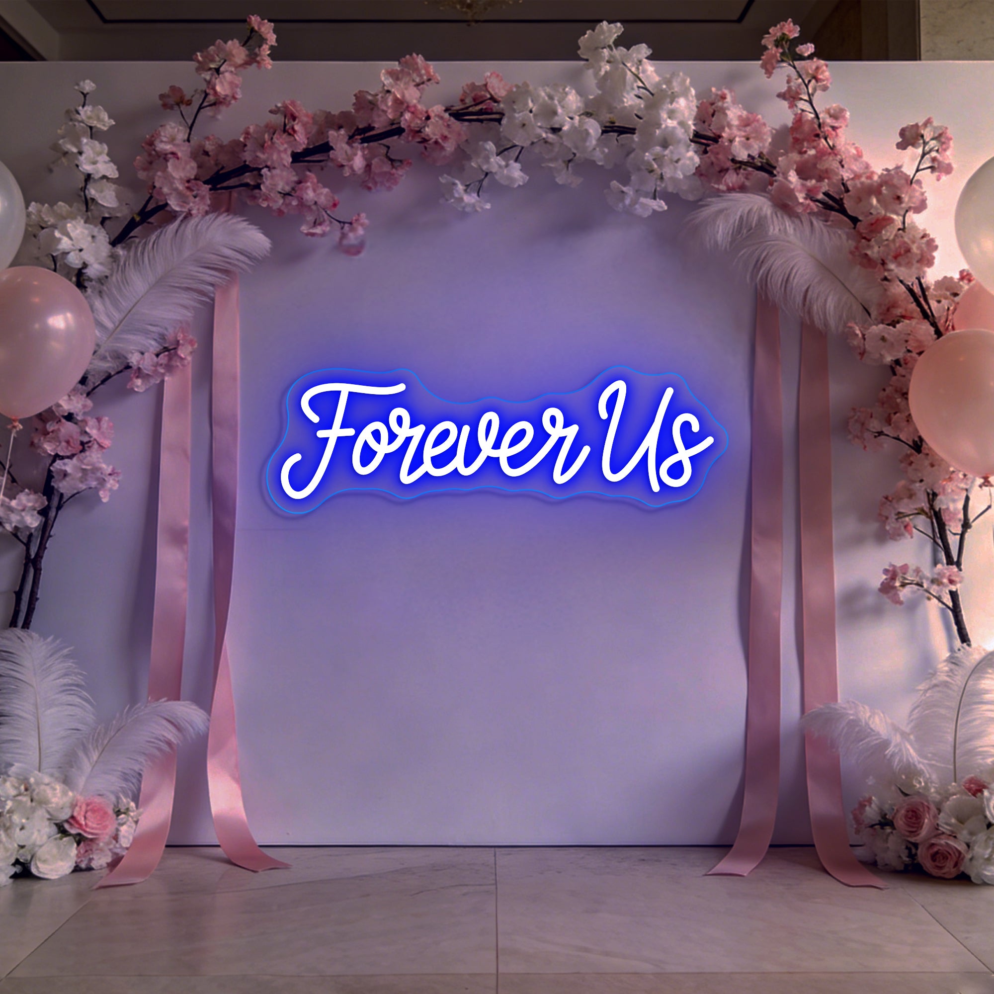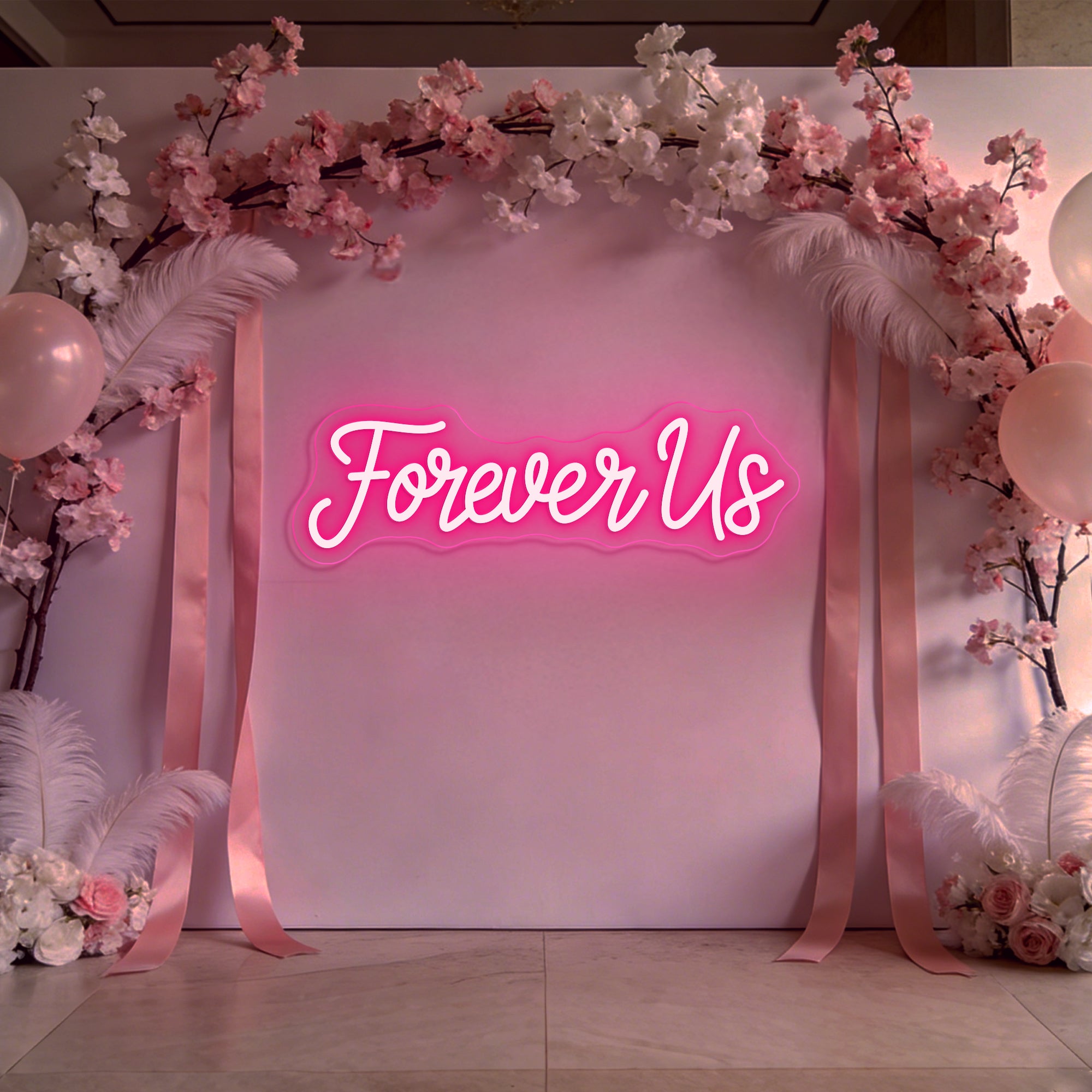 Timeless & Personalized Love Design: This bespoke sign immortalizes your unique love story. The design elegantly fuses the enduring word “FOREVER” with the personal pronoun “US”, often creatively linked by an infinity symbol, intertwined rings, or a delicate flourish. The typography is custom-crafted, blending script and modern fonts to reflect your personal style. Rendered in brilliant LED neon, it transforms a simple phrase into a luminous, one-of-a-kind artwork that declares your permanent bond to the world.