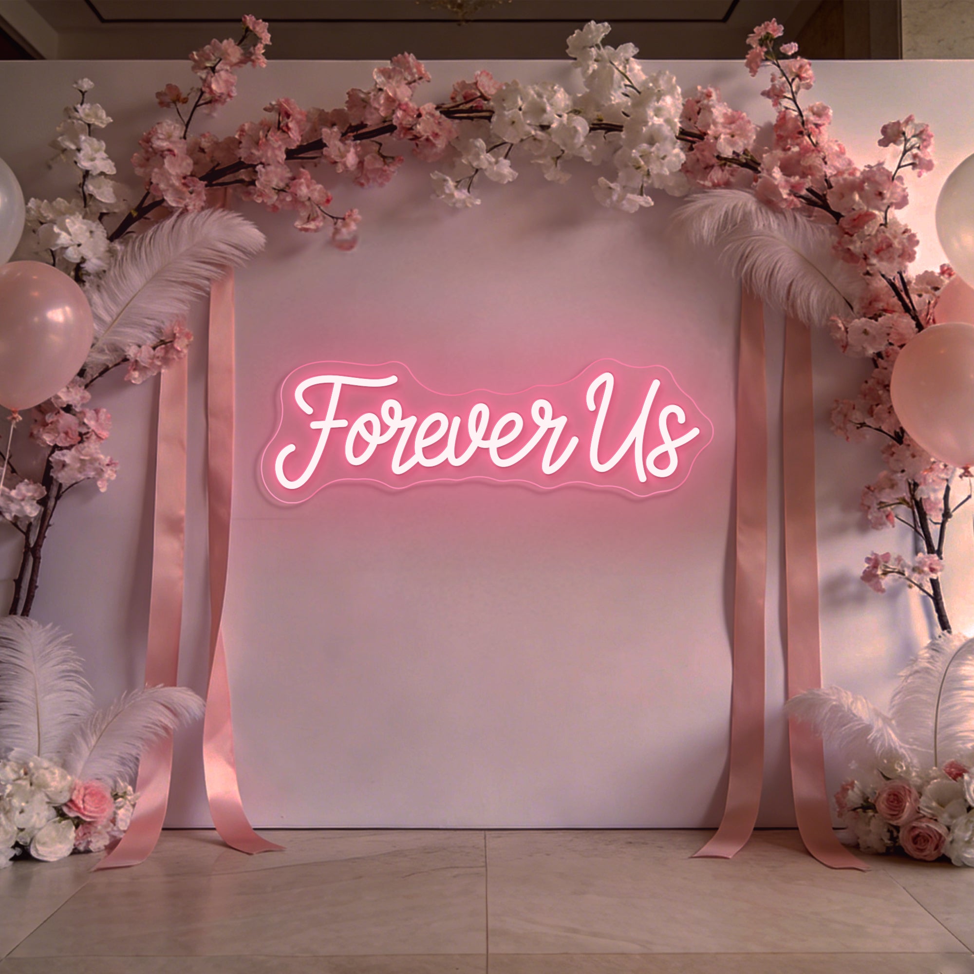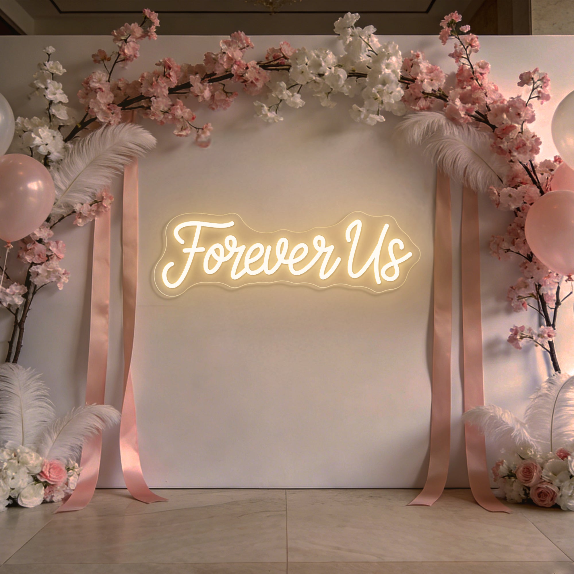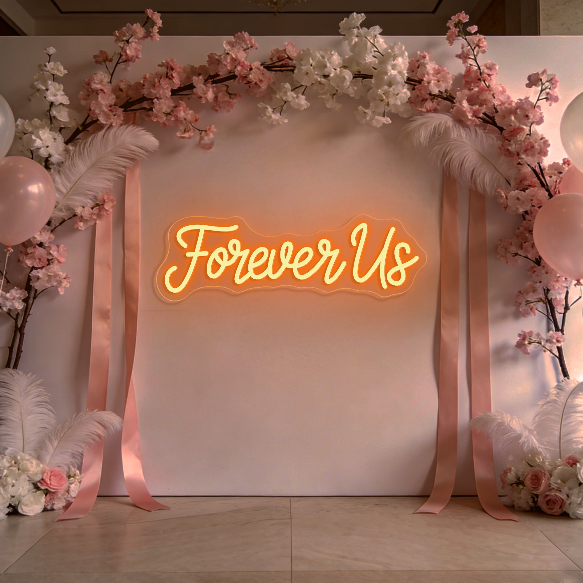 Timeless & Personalized Love Design: This bespoke sign immortalizes your unique love story. The design elegantly fuses the enduring word “FOREVER” with the personal pronoun “US”, often creatively linked by an infinity symbol, intertwined rings, or a delicate flourish. The typography is custom-crafted, blending script and modern fonts to reflect your personal style. Rendered in brilliant LED neon, it transforms a simple phrase into a luminous, one-of-a-kind artwork that declares your permanent bond to the world.