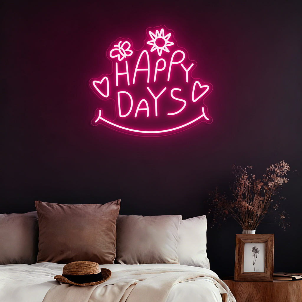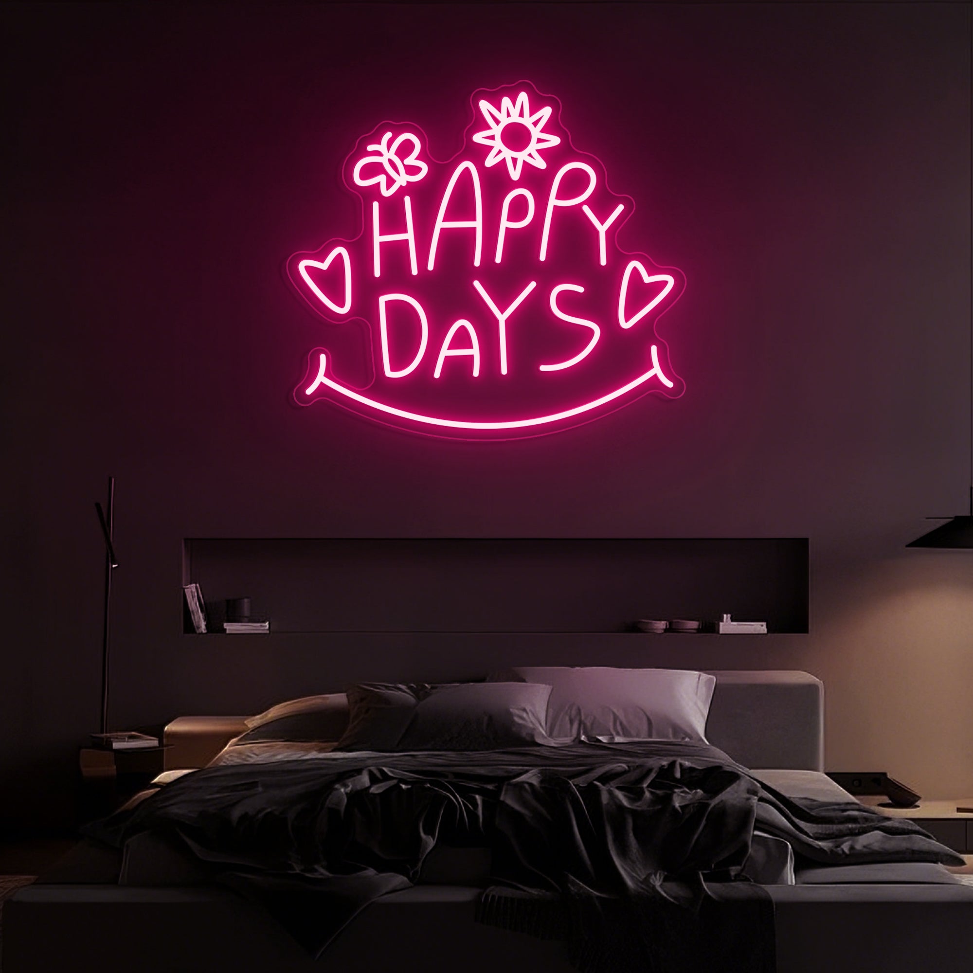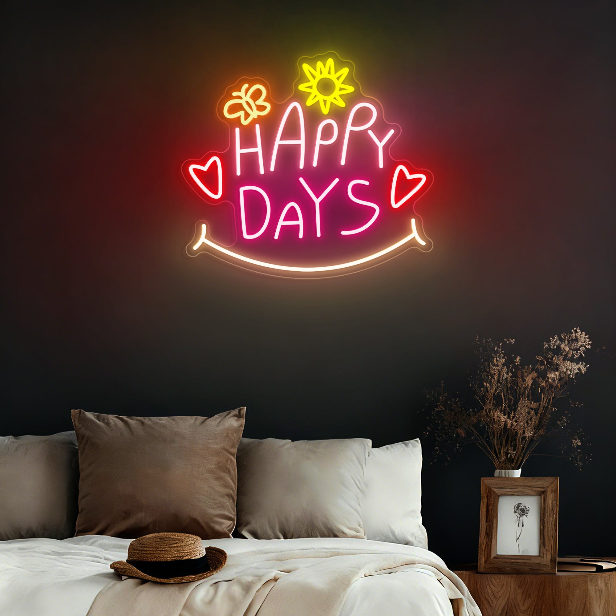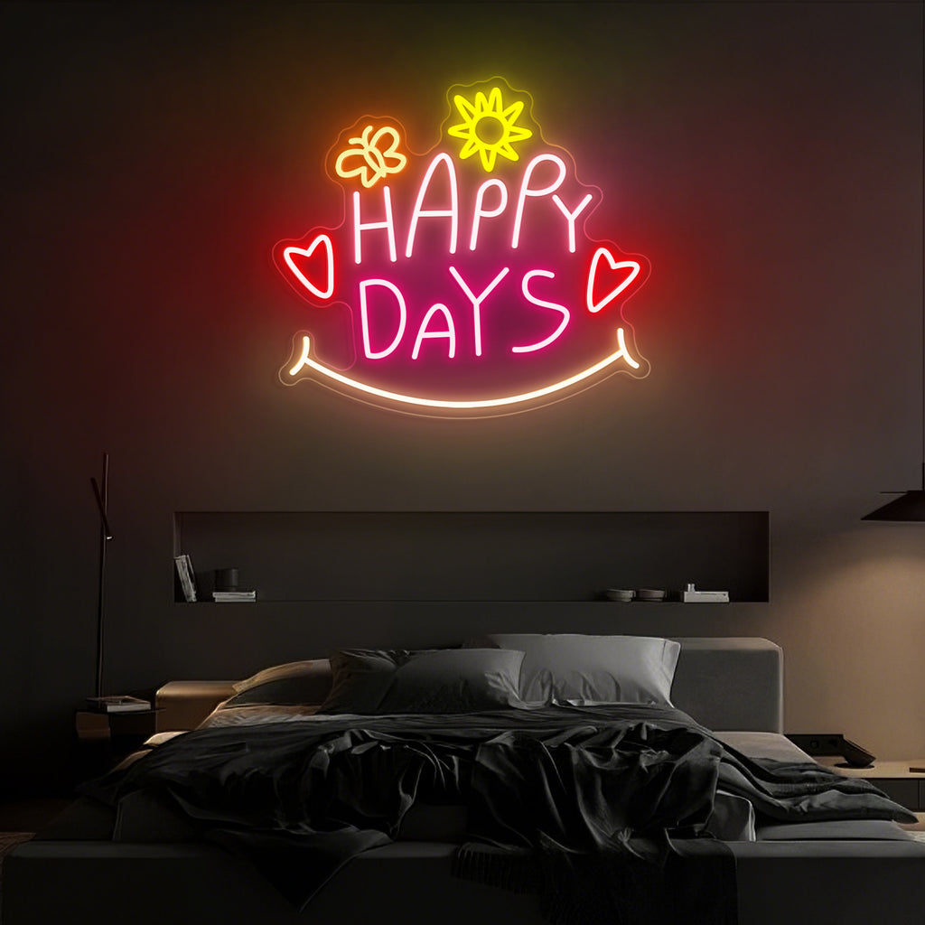 HDJSign - Happy Days Sun Heart Butterfly Neon Sign