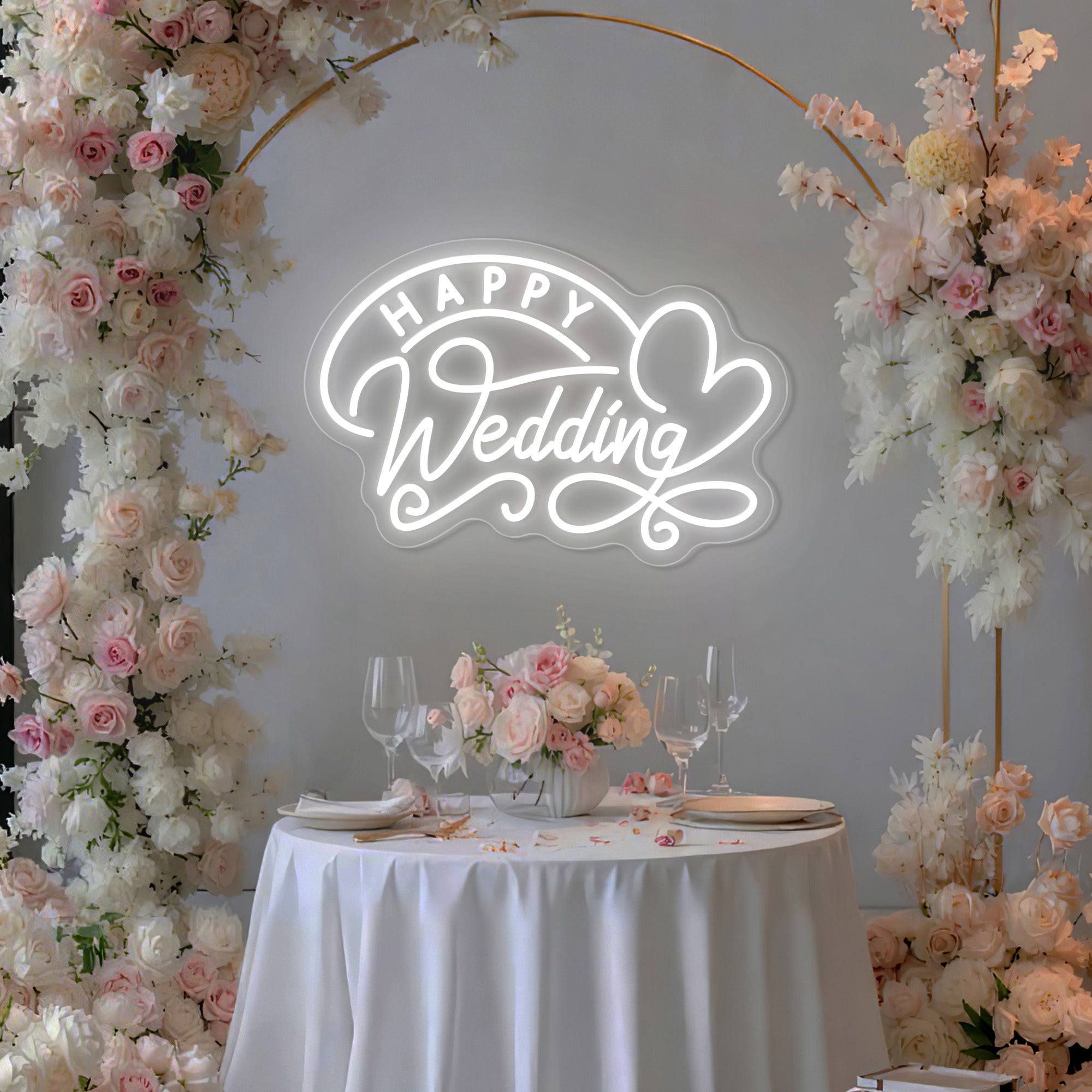 Elegant & Celebratory Typography: This radiant sign features the joyful phrase “HAPPY WEDDING” in a graceful script or clean modern font, often accompanied by symbolic motifs like intertwined rings, twin hearts, or a subtle Mr. & Mrs. insignia—all crafted in sleek dual-line LED neon. The design captures the essence of union and celebration, transforming a momentous occasion into a luminous, permanent keepsake that glows with love and new beginnings.