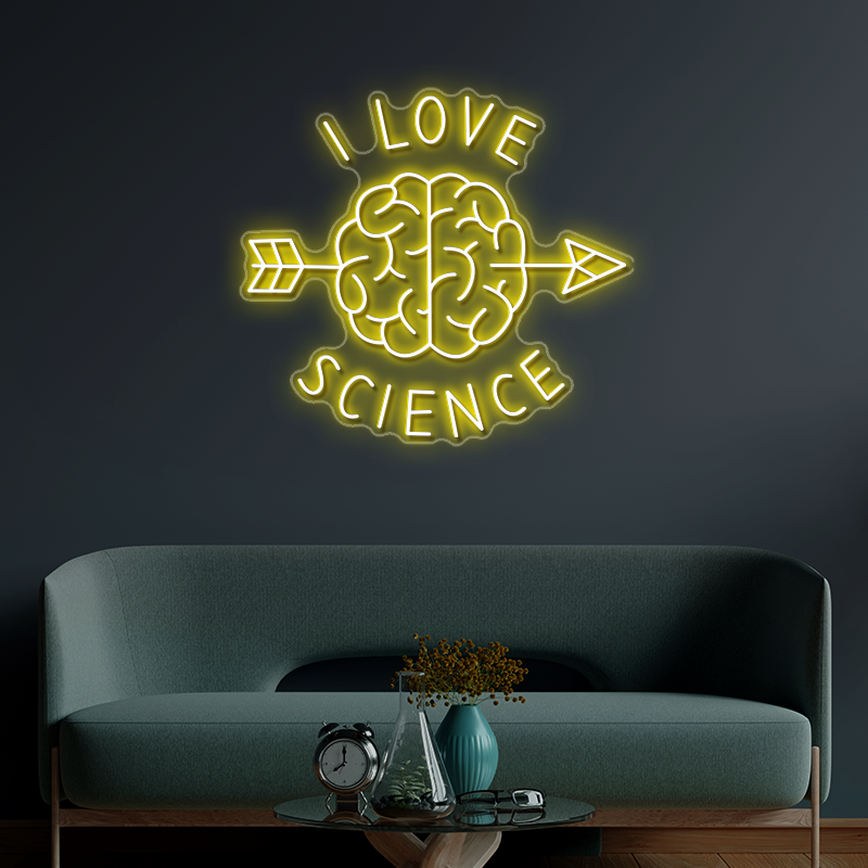 HDJSign - I Love Science Brain and Arrow Neon Sign