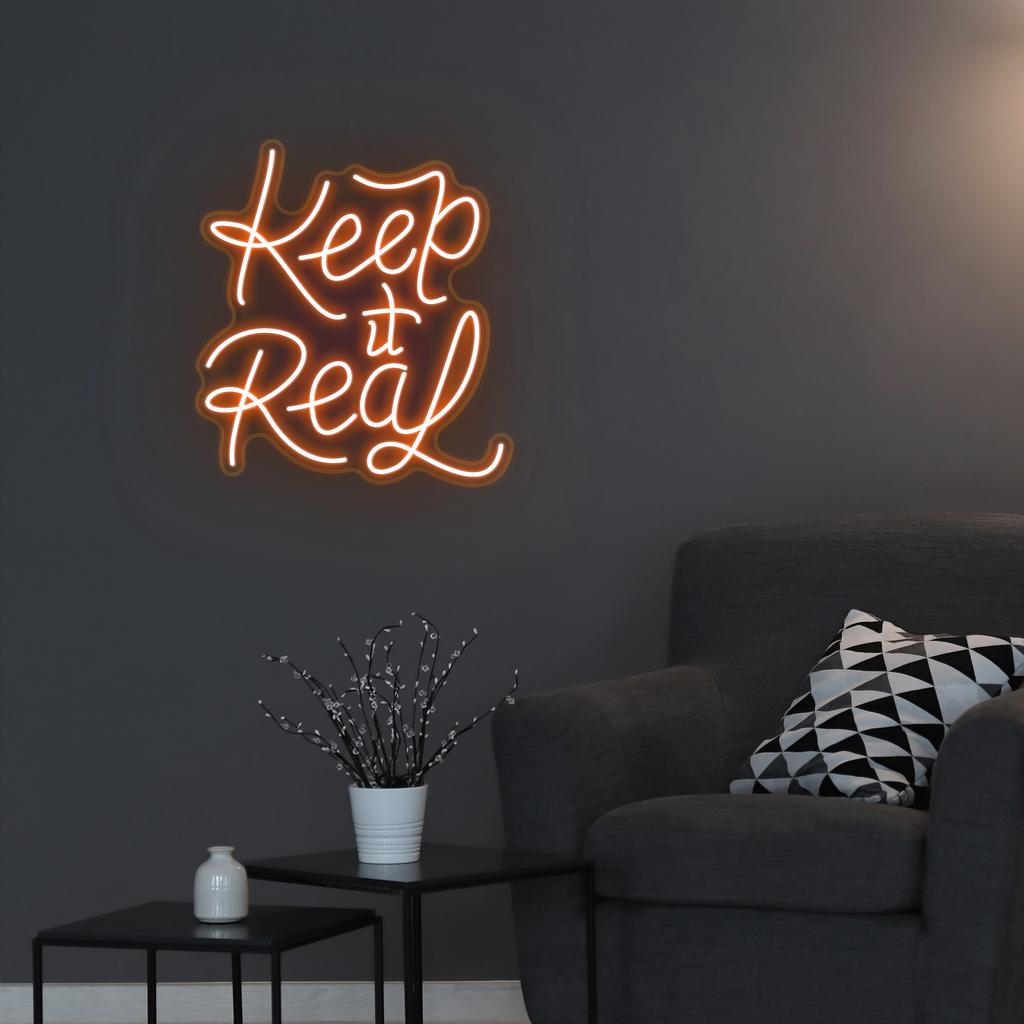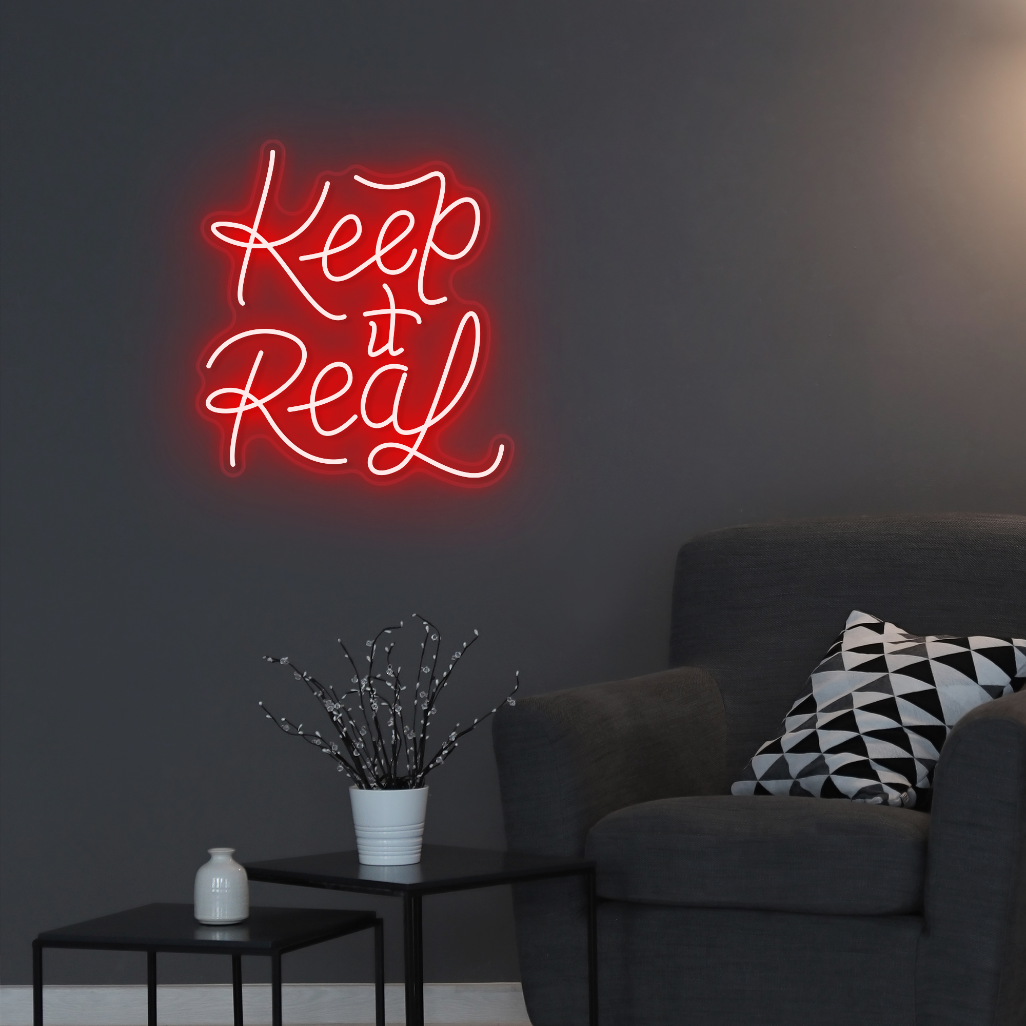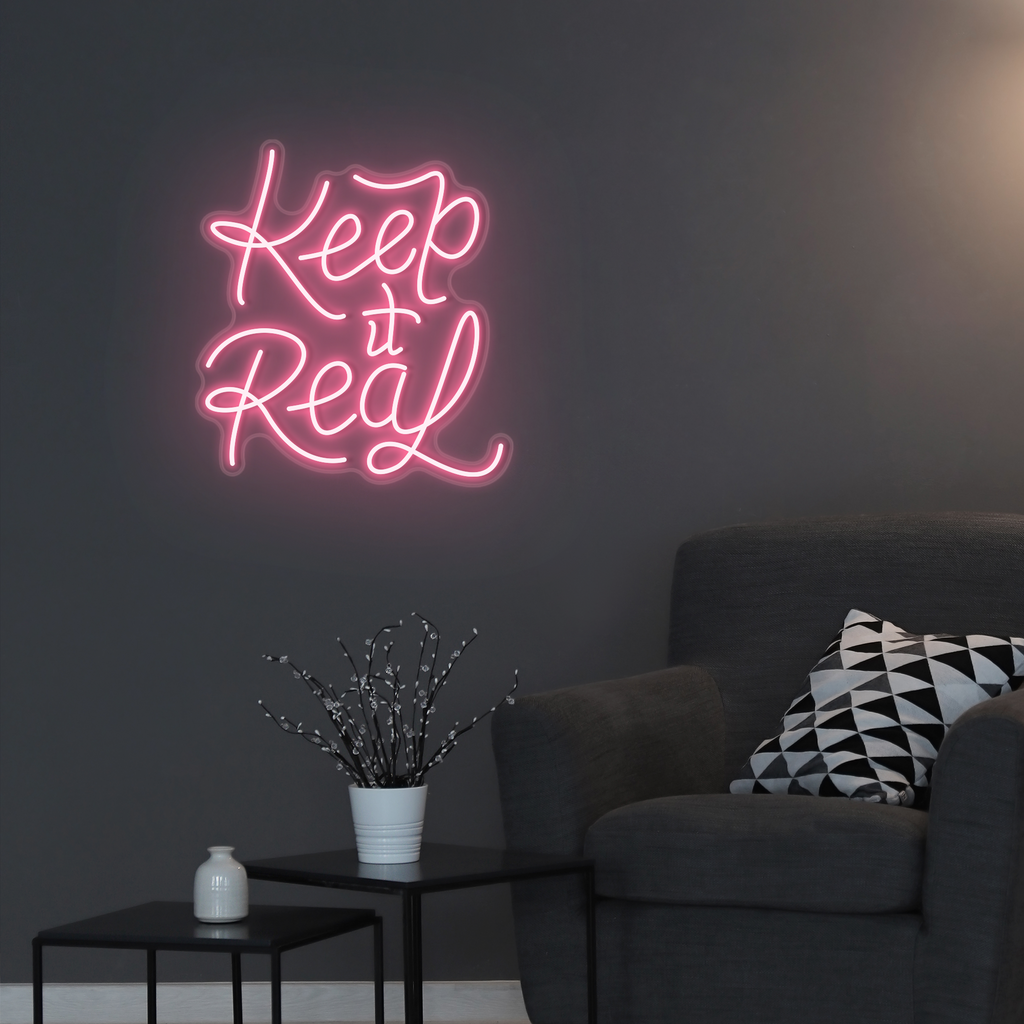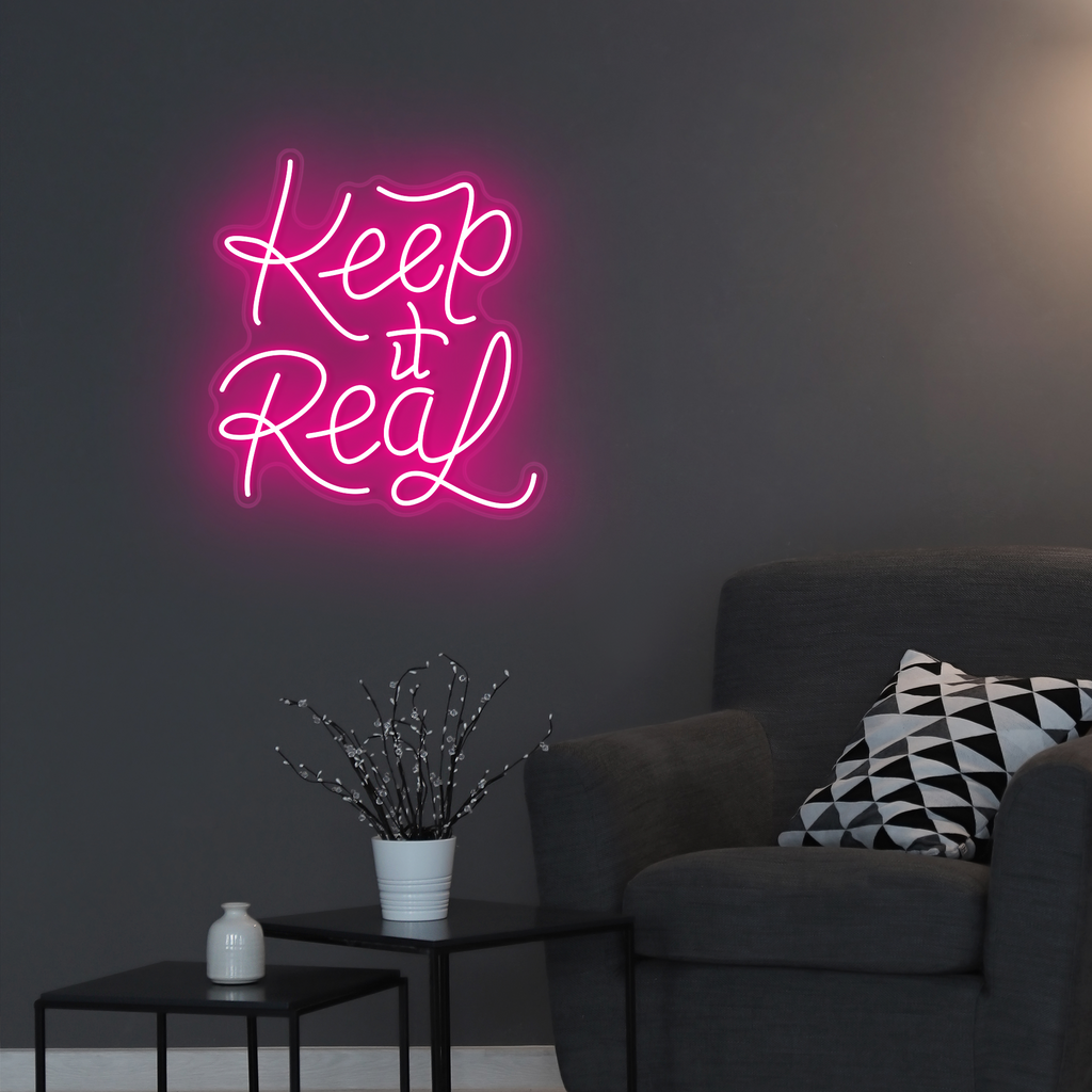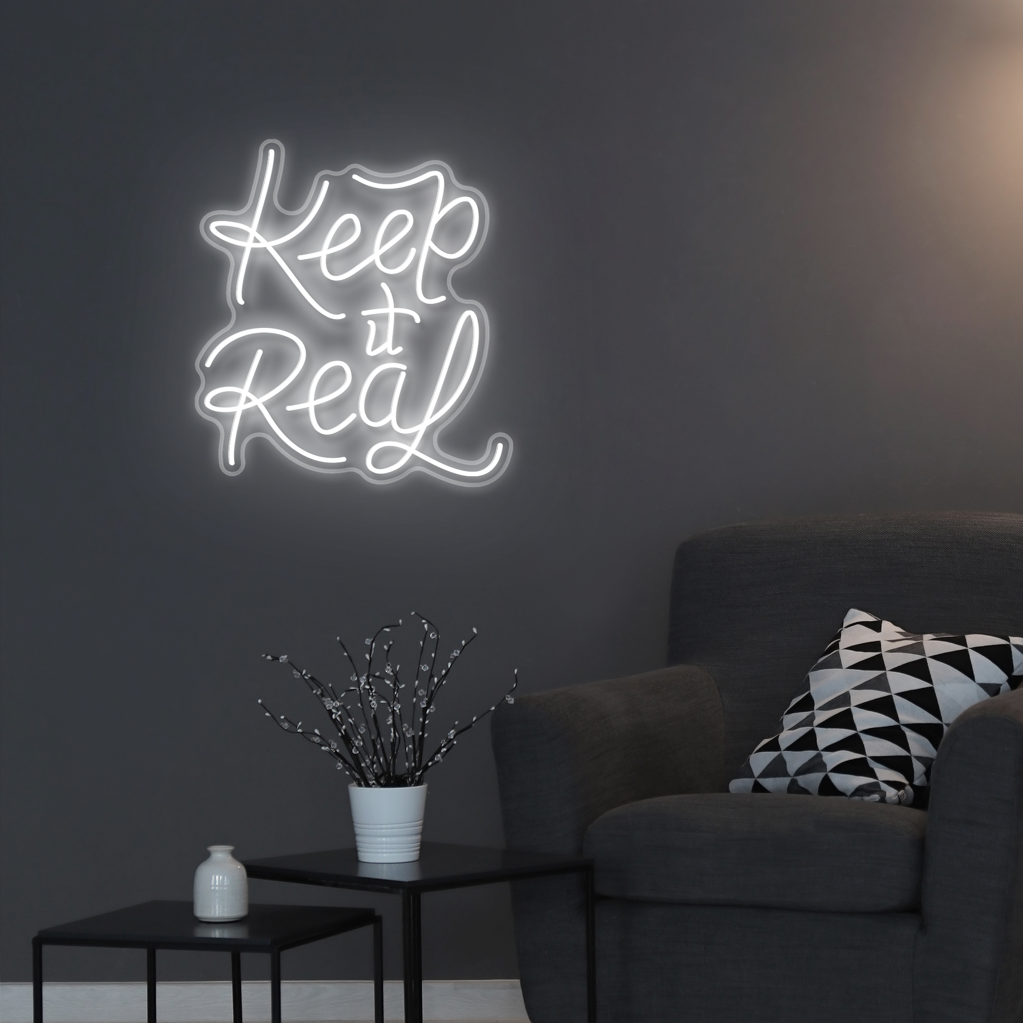 Authentic Typography Design: This sign features the sincere phrase “KEEP IT REAL” in a clean, modern script crafted from smooth LED neon. Its straightforward design delivers a powerful message of authenticity with minimalist style.