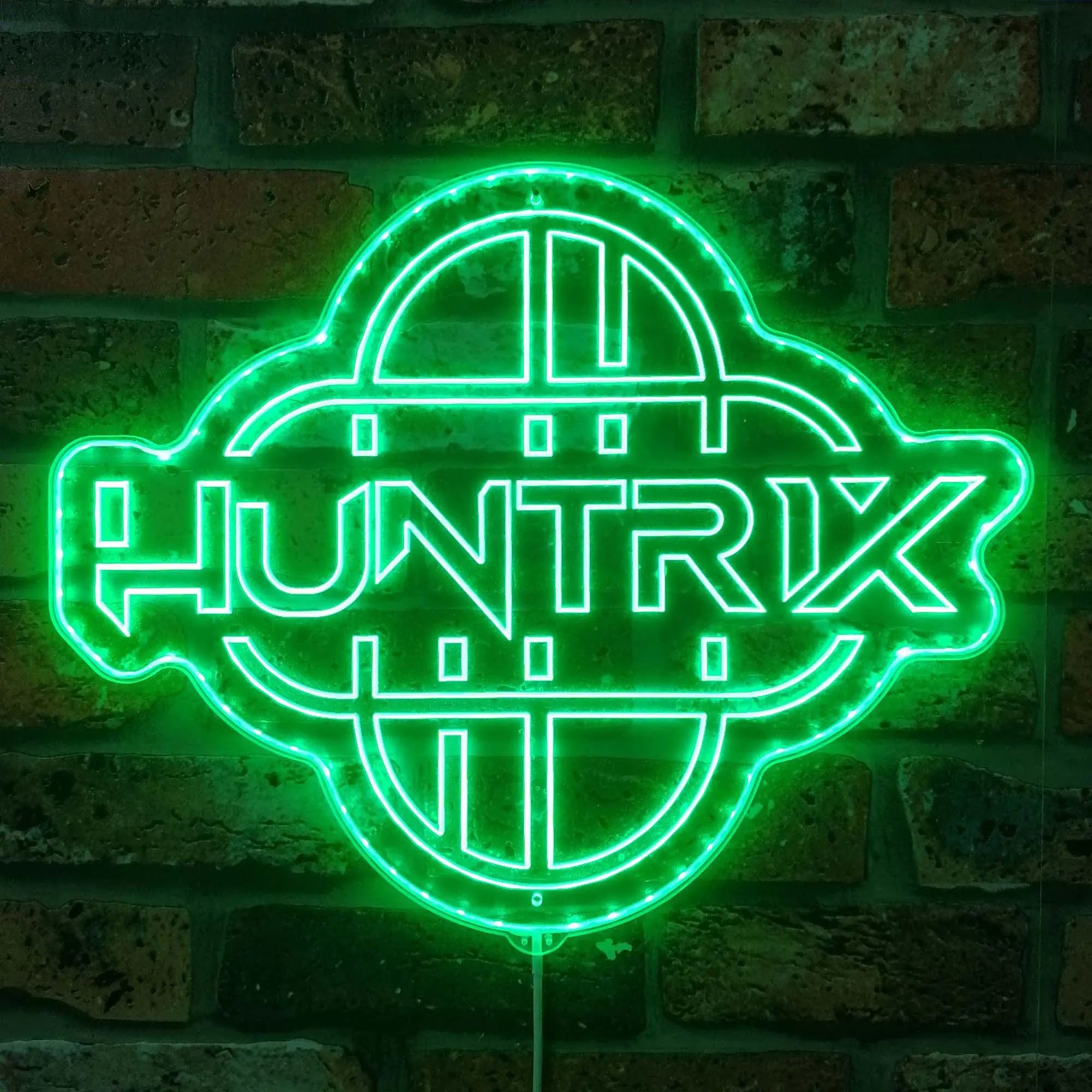 Futuristic Fusion Graphic Design: This electrifying sign masterfully blends K-pop energy with cyber-fantasy aesthetics. Its central focus is the powerful custom moniker "HUNTRIX", rendered in a sharp, dual-line futuristic font that suggests both speed and authority. The name is dynamically framed above and below by pulsating wave-like circular patterns—resembling digital soundwaves, energy ripples, or targeting interfaces—creating a sense of amplified power and rhythmic motion. This cohesive composition, expertly crafted in multi-color LED neon, visually narrates a story where cutting-edge sound meets high-stakes pursuit.