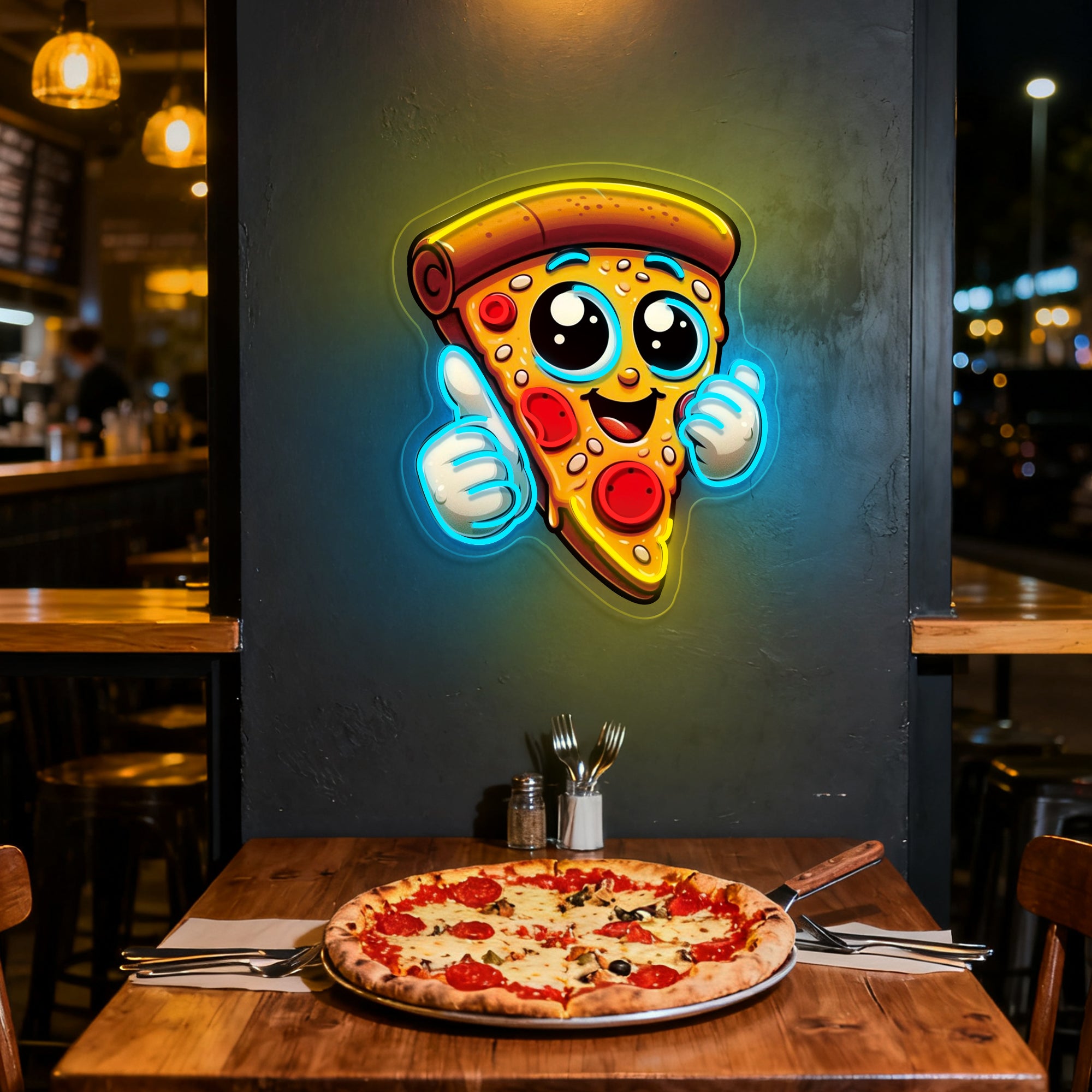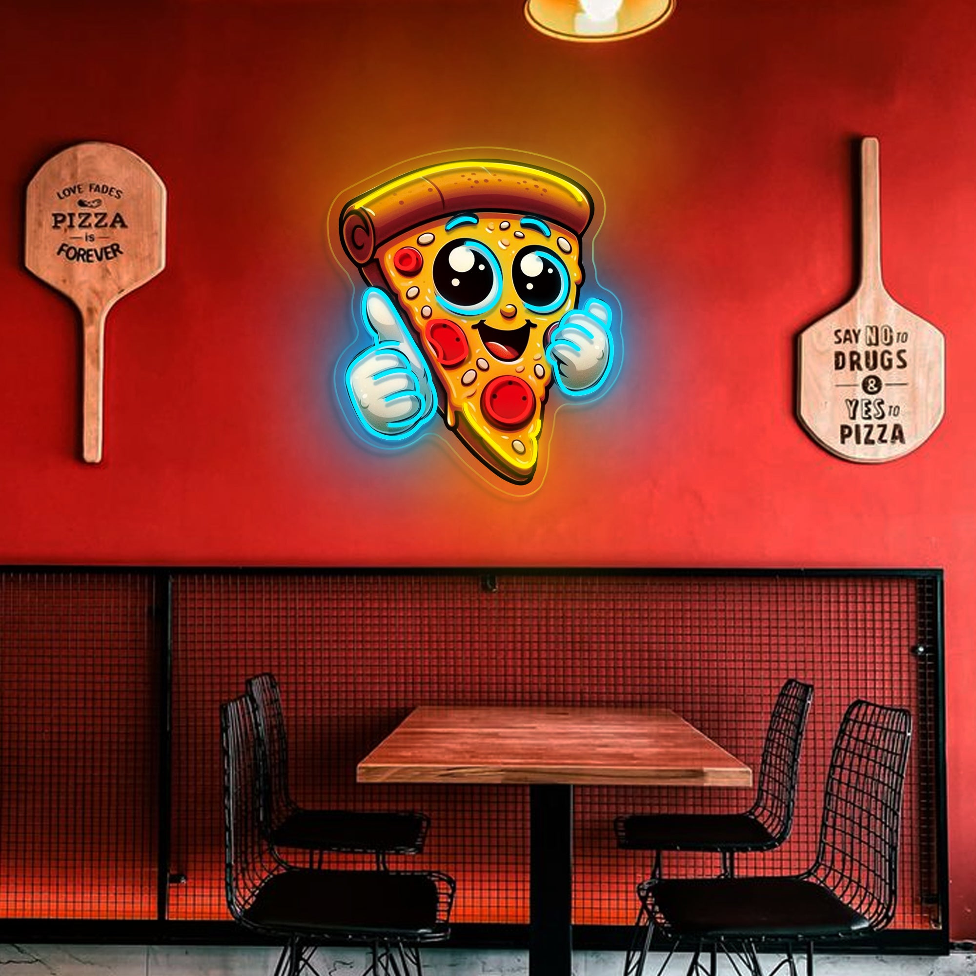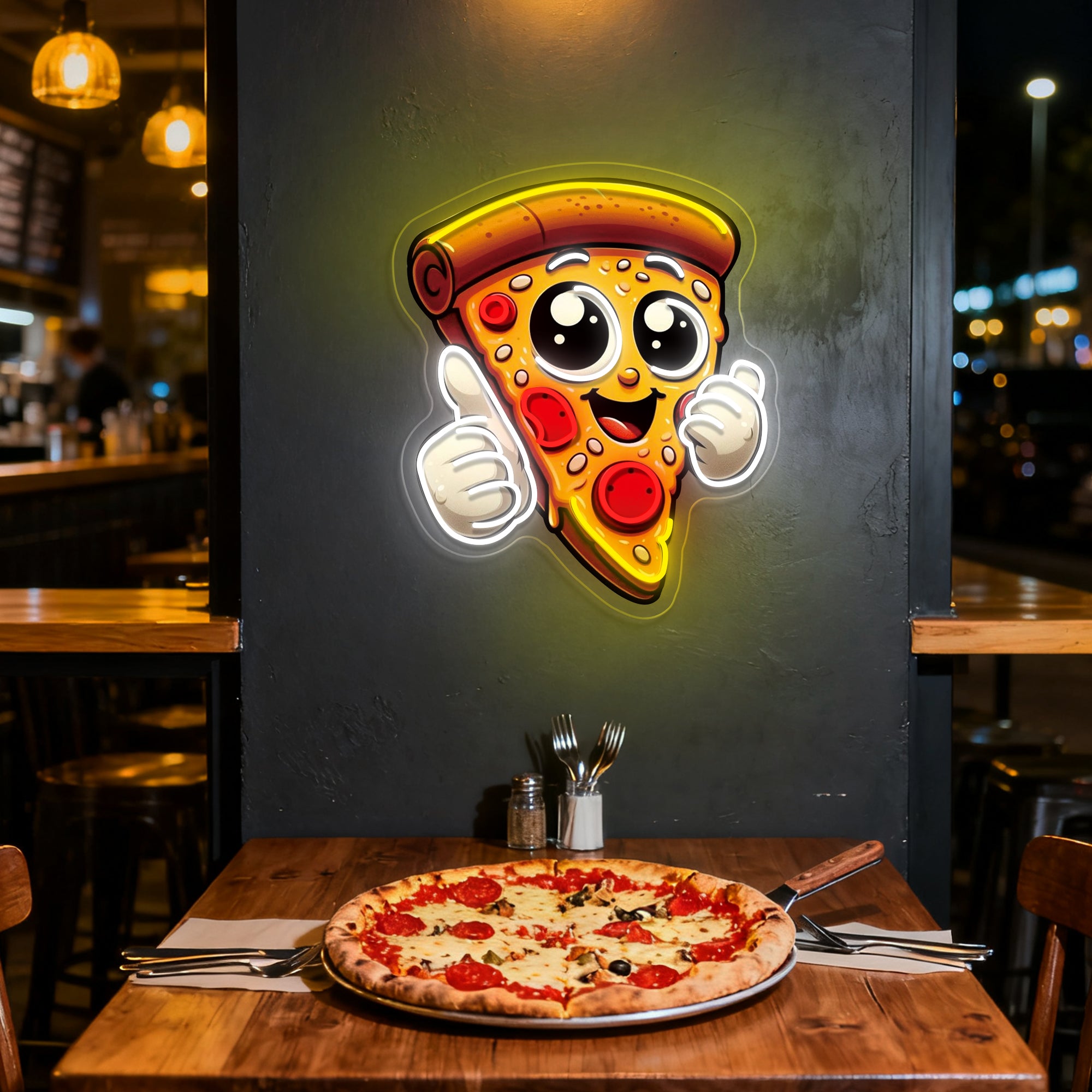 Transform your restaurant's appeal with our mouth-watering Pizza Slice neon sign. This expertly crafted piece uses advanced UV printing technology to create an incredibly realistic pizza slice that customers can't resist. Perfect for pizzerias, Italian restaurants, food courts, or any dining establishment, it instantly communicates your specialty and creates a warm, welcoming atmosphere that draws people in. The lifelike depiction of melted cheese and fresh toppings will have everyone craving a slice before they even step inside.