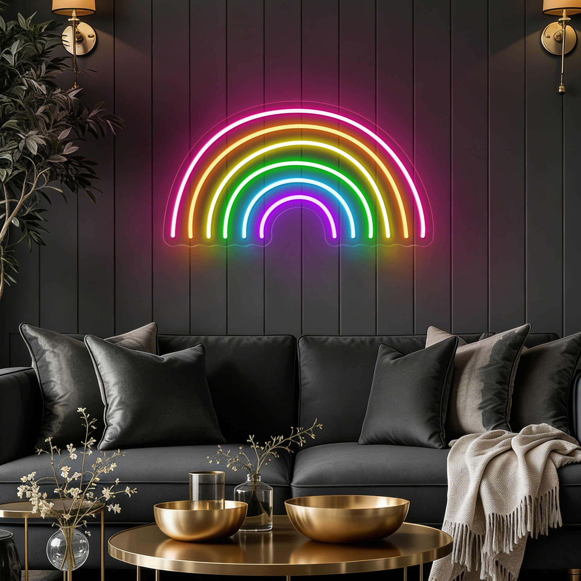 Dreamy & Flowing Rainbow Arc Design: This enchanting sign captures the serene beauty of a classic rainbow in a soft, minimalist arc or full-spectrum band, rendered in smooth, continuous LED neon. The design often features a gentle gradient of colors blending seamlessly or distinct, pure bands of light, transforming a timeless symbol of hope, diversity, and dreams into a luminous piece of wall art that feels both nostalgic and wonderfully modern.