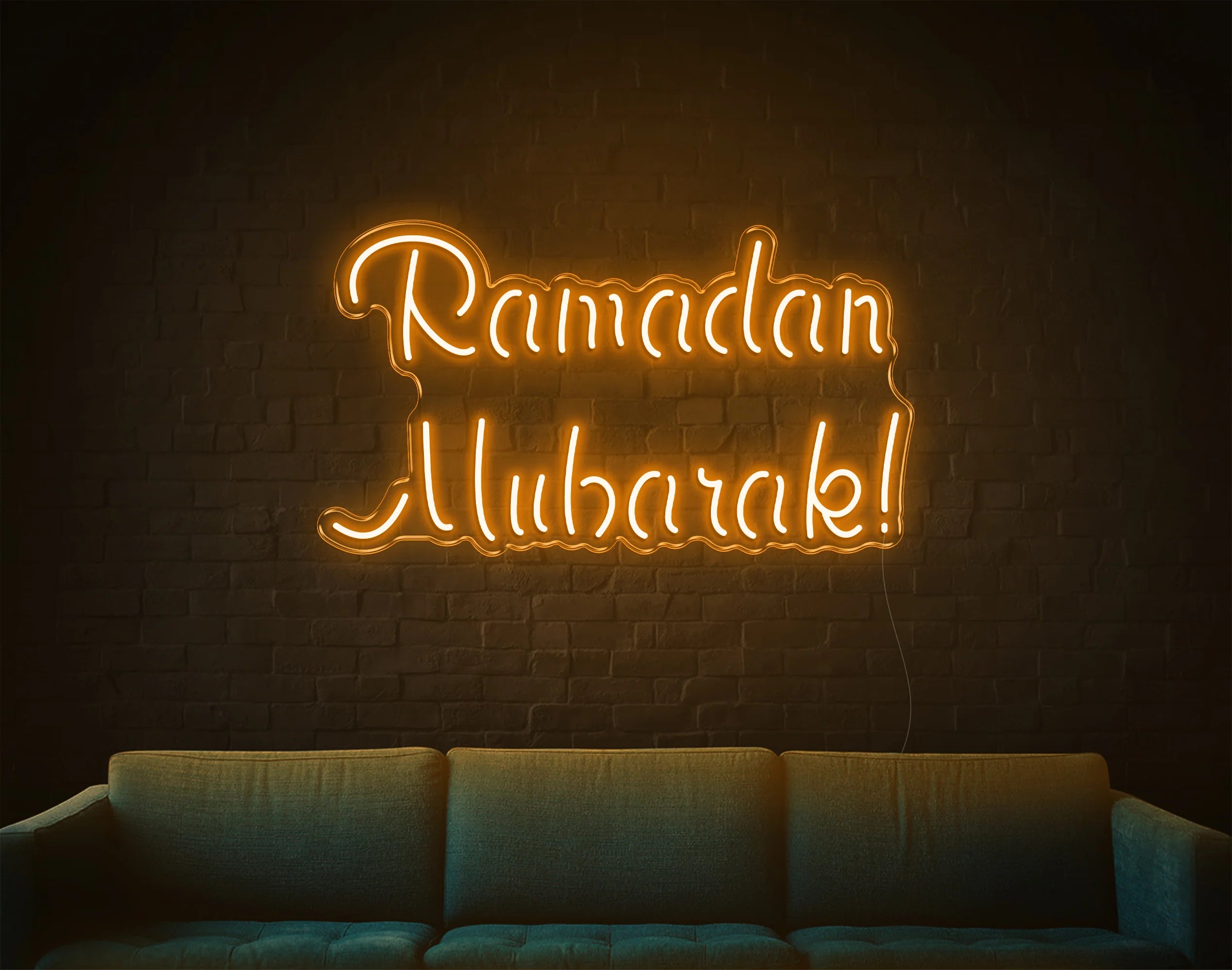 Elegant & Sacred Typography: This beautifully designed sign features the traditional Islamic greeting “Ramadan Mubarak” (Blessed Ramadan) in elegant Arabic calligraphy or a modern bilingual style (Arabic with English translation). Often adorned with subtle Islamic art motifs—such as delicate geometric patterns, a crescent moon, or a star—all rendered in smooth, flowing LED neon lines. The design honors the spiritual significance of the holy month, transforming a heartfelt greeting into a luminous piece of cultural and artistic expression.