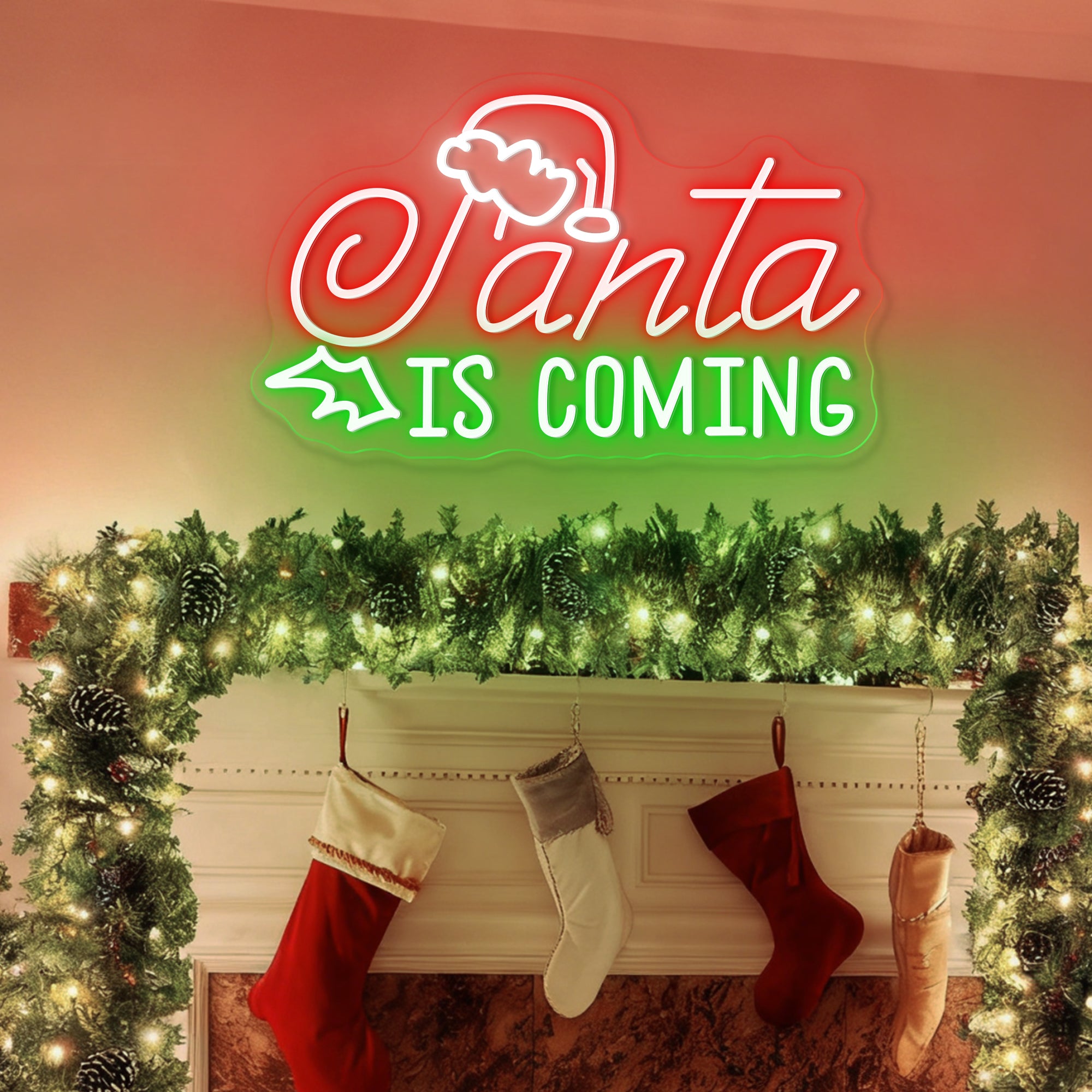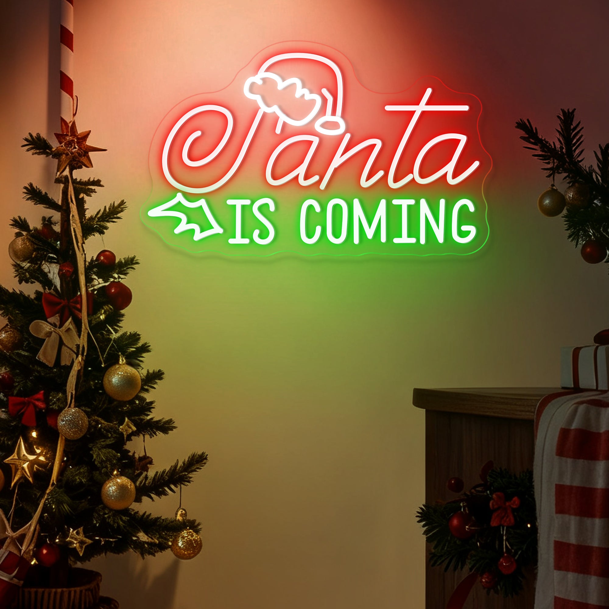 Fill your space with the joy and anticipation of the holiday season with our "Santa Is Coming" Christmas neon sign. This delightful piece is more than just wall decor; it's a celebration of Christmas magic that will delight both children and adults. Perfect for living rooms, entryways, shops, or as a focal point for holiday parties, it adds a touch of nostalgic warmth and contemporary style to your Christmas decorations.