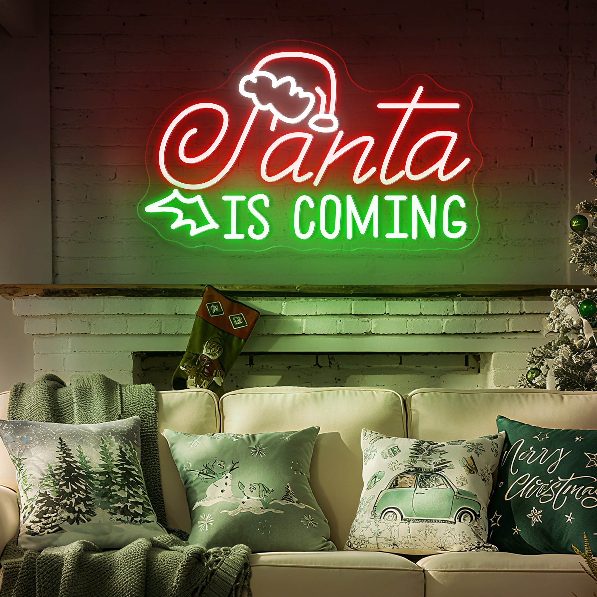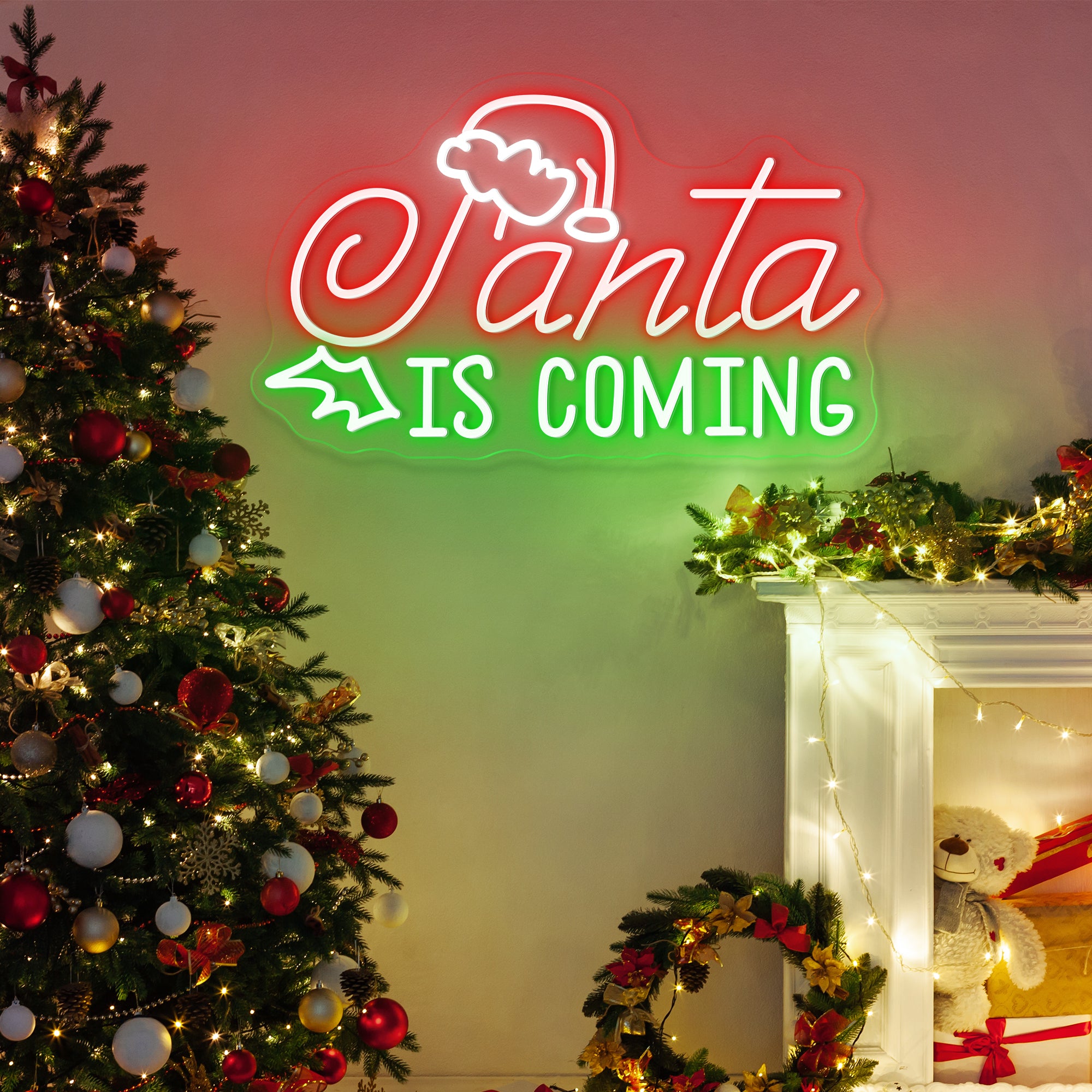 Santa Is Coming Christmas Artwork LED Neon Sign