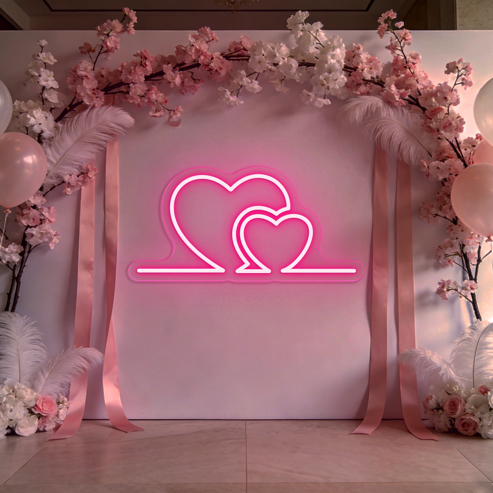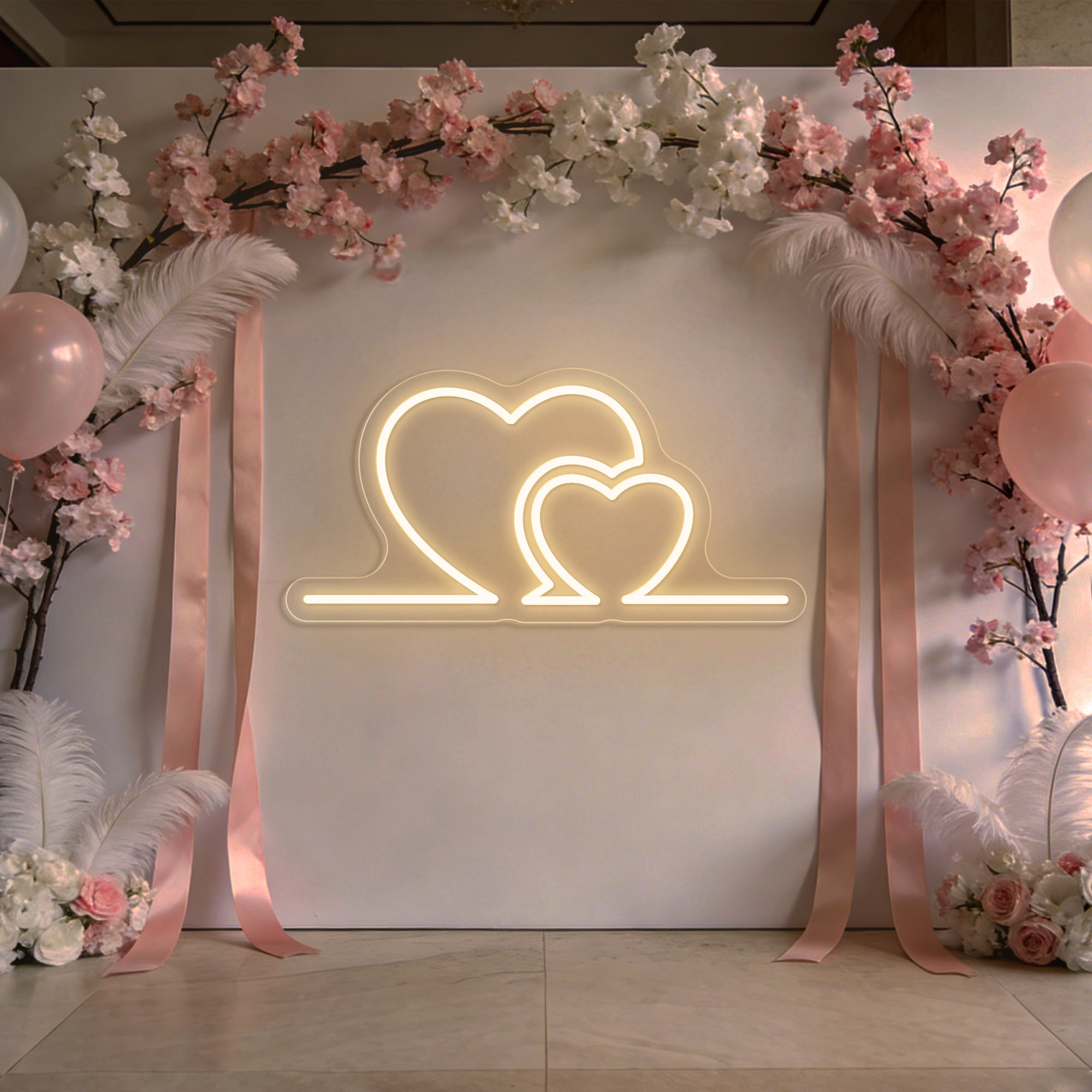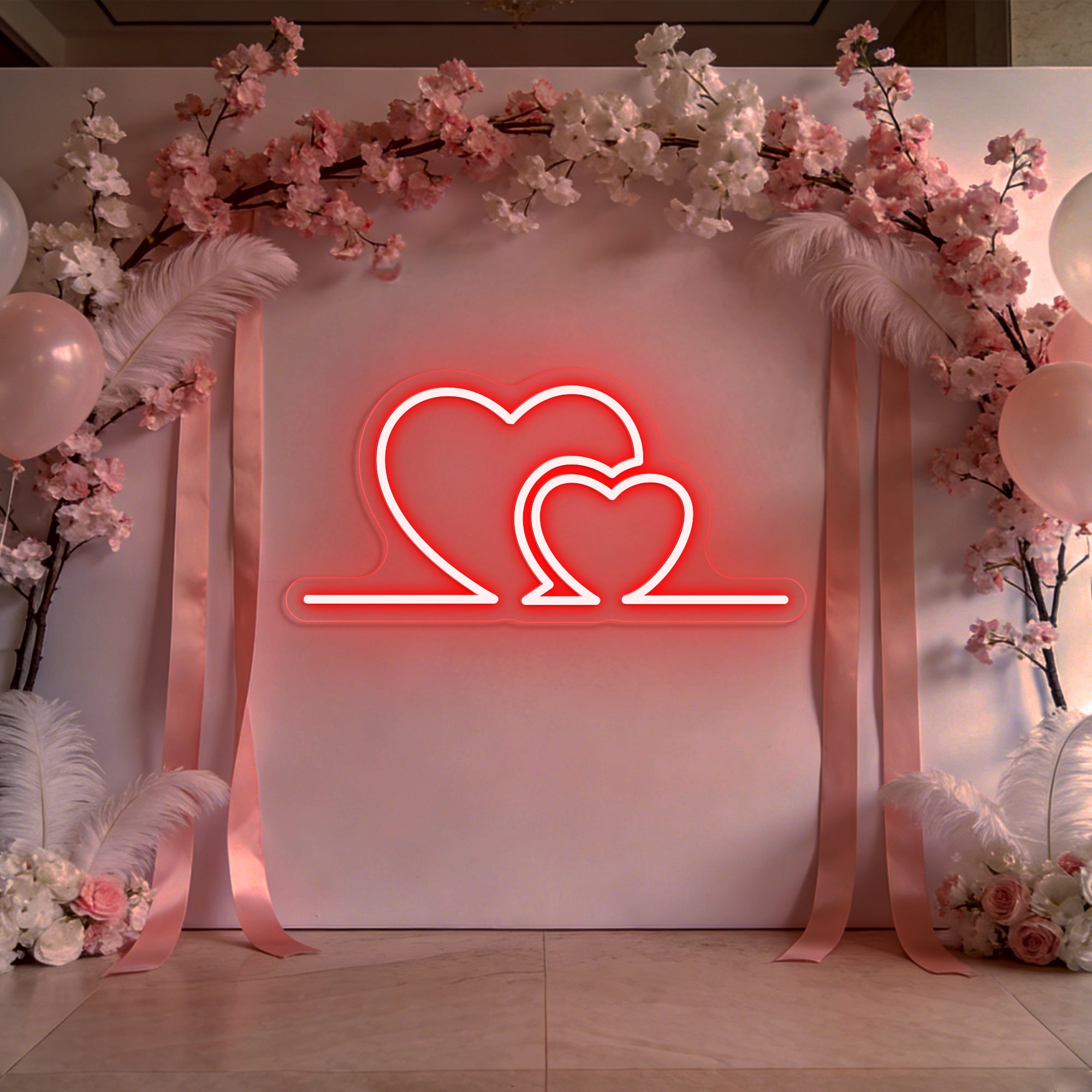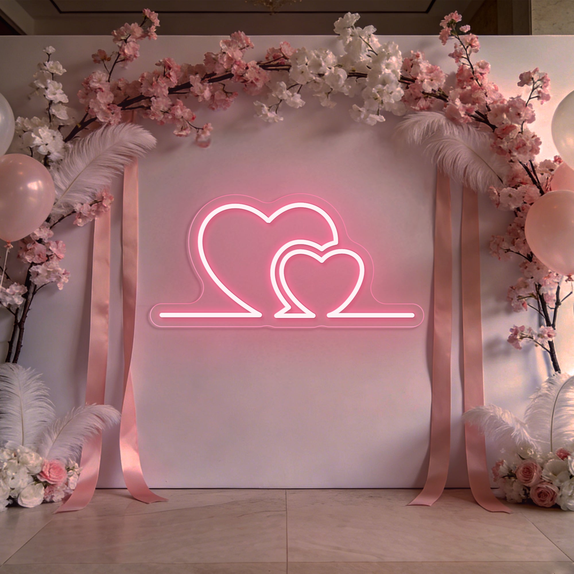 Premium Artisan Craftsmanship: Meticulously handcrafted from high-quality, flexible LED neon. The flowing curves of each heart are shaped with precision to ensure smooth, even illumination and perfect symmetry. Energy-efficient, cool to the touch, and built to last as a cherished heirloom of your celebration.
