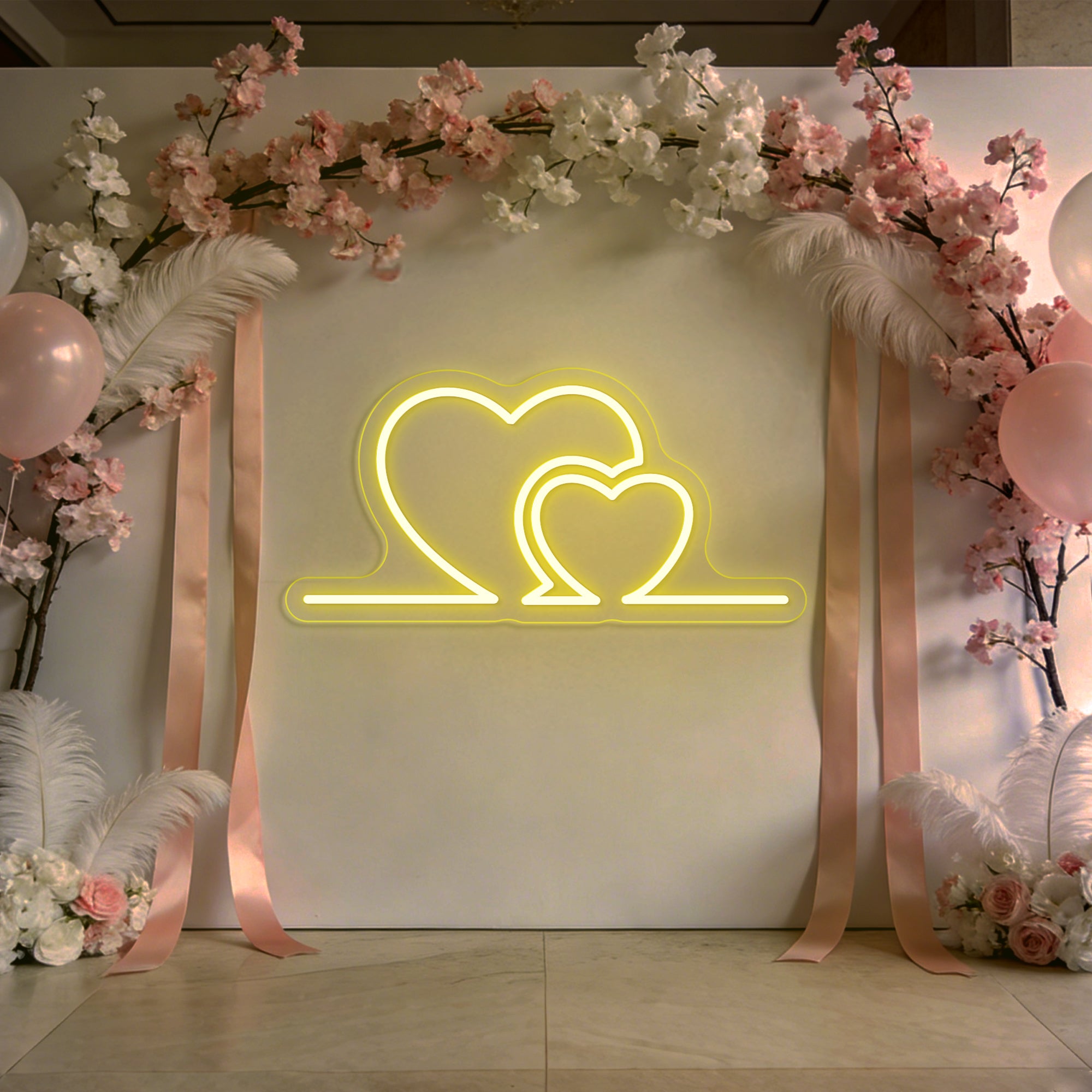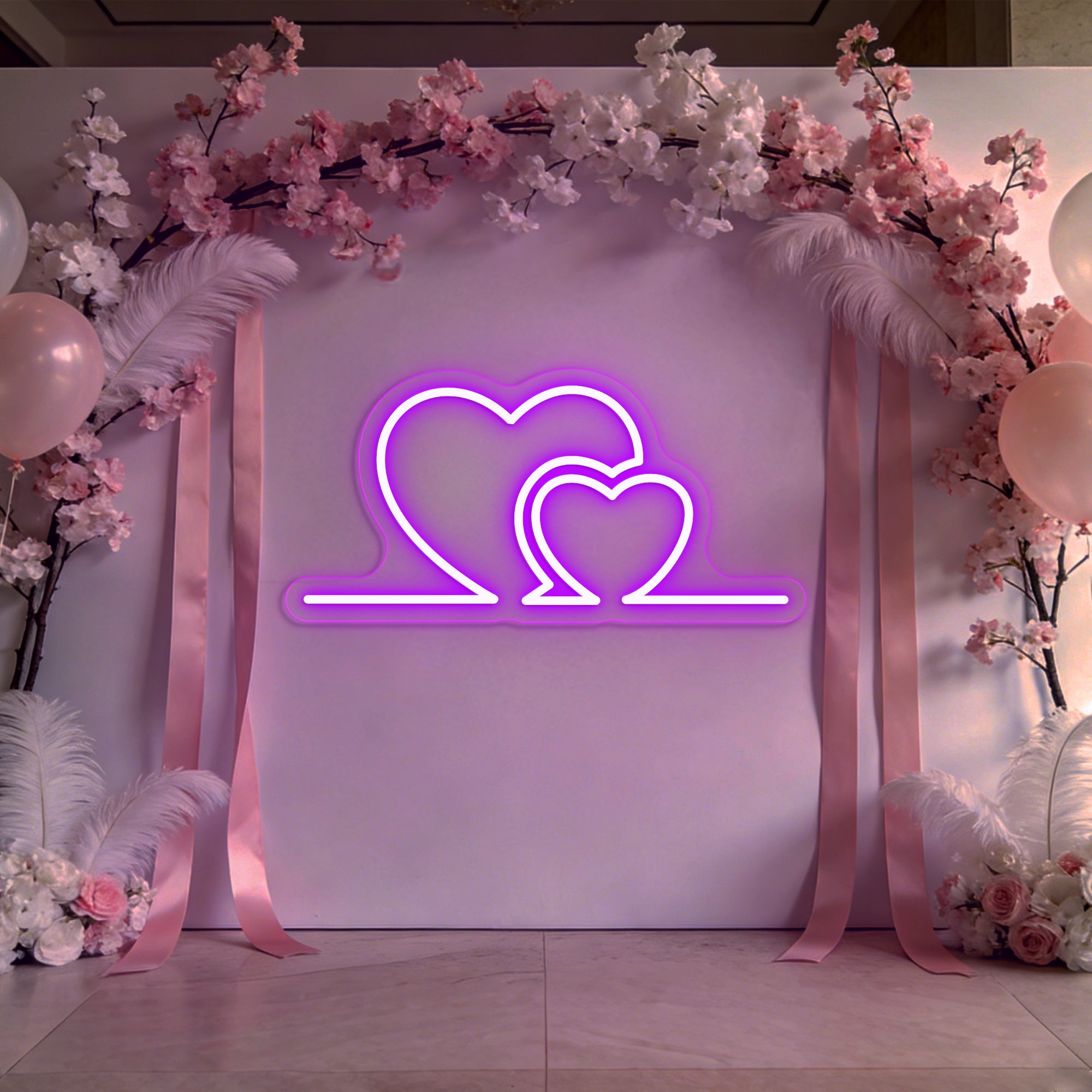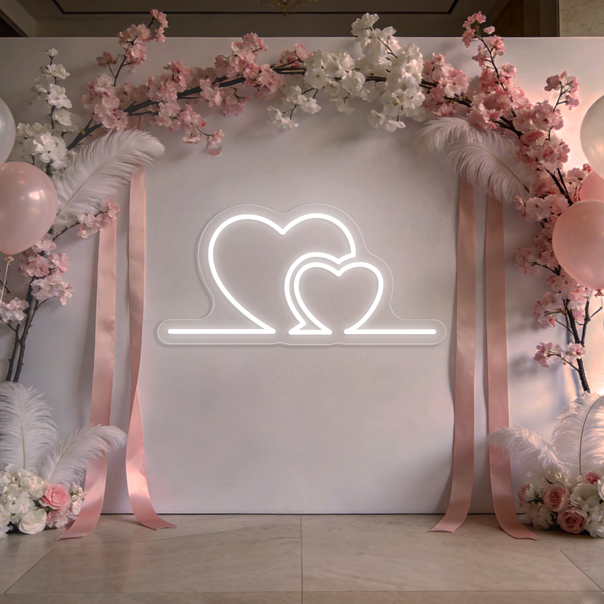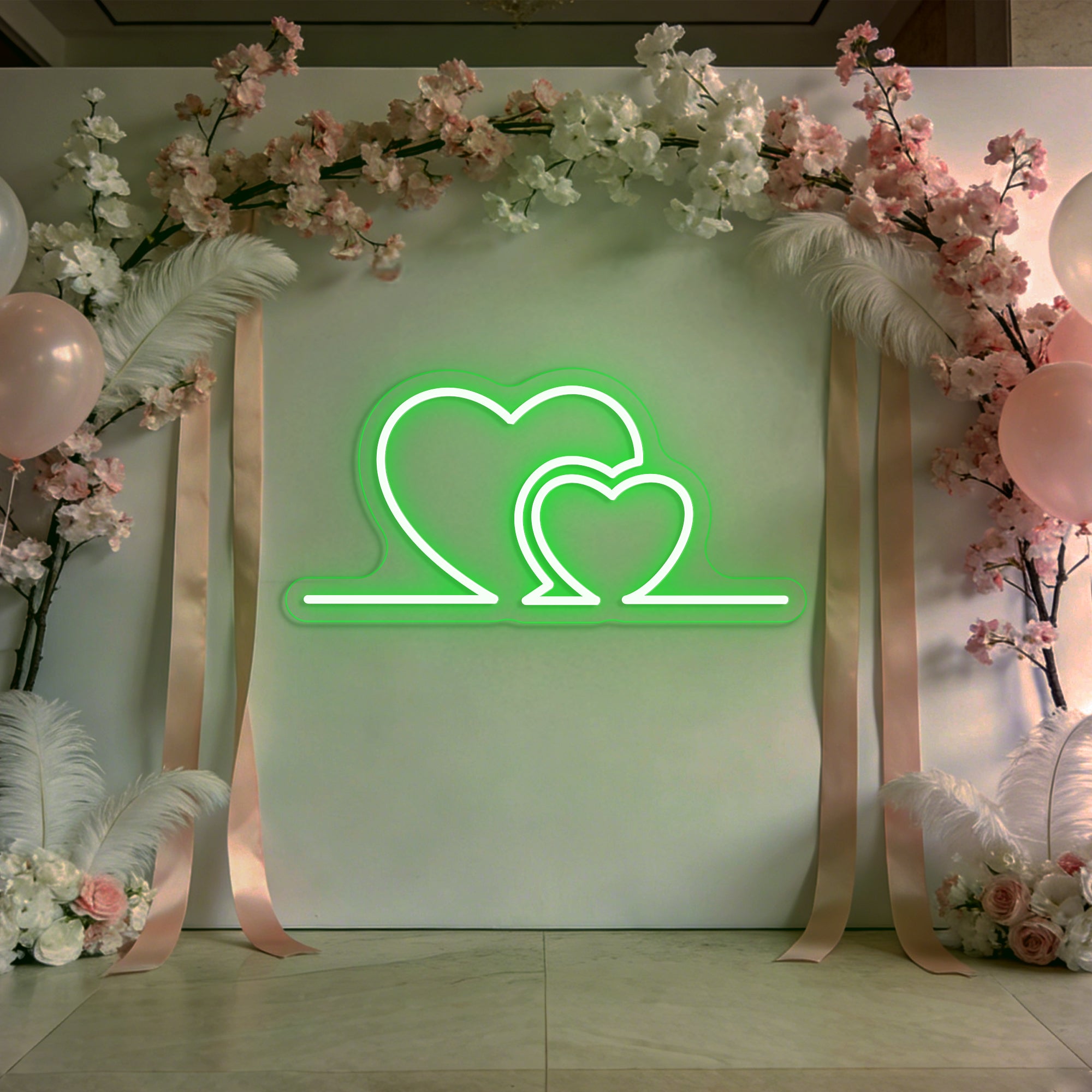 Premium Artisan Craftsmanship: Meticulously handcrafted from high-quality, flexible LED neon. The flowing curves of each heart are shaped with precision to ensure smooth, even illumination and perfect symmetry. Energy-efficient, cool to the touch, and built to last as a cherished heirloom of your celebration.