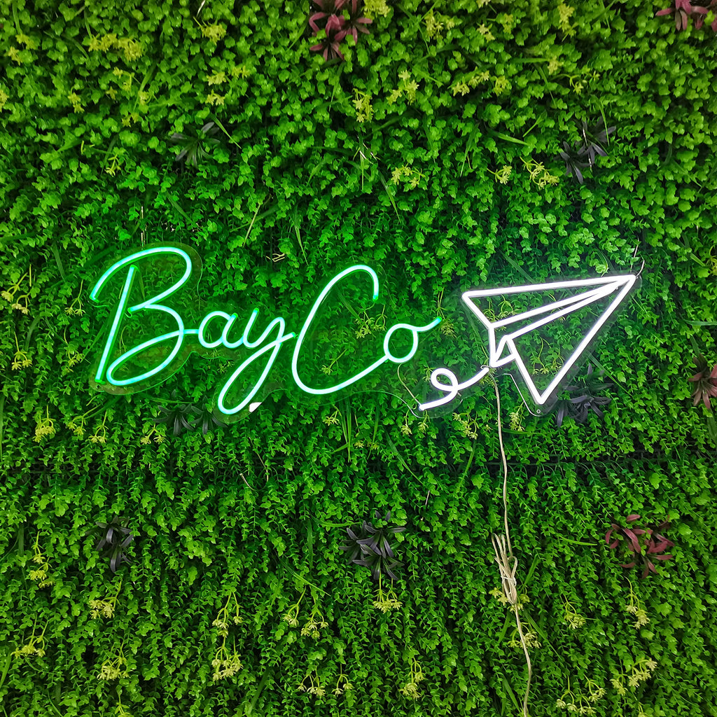 Our LED neon signs are mounted on high quality, clear acrylic backboards.