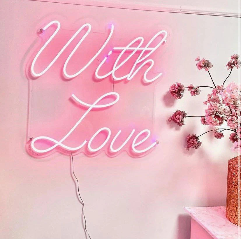Elegant & Expressive Typography Design: This sign delivers its message with graceful simplicity. It features the heartfelt phrase “With Love” in a beautifully flowing script or a clean, refined modern font. The design is intentionally warm and uncluttered, transforming a universal expression of affection into a luminous, elegant statement. Expertly crafted in smooth, continuous LED neon lines, it turns a sentiment into a radiant focal point for your special celebration.